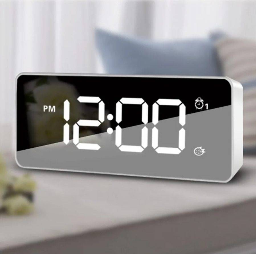 Электронные часы будильник с большими LCD дисплеем, с большими зелеными цифрами, которые прекрасно видно как в темноте, так и при солнечном свете. С цифрами такого размера время будет видно как пожилым людям, так и людям с плохим зрением.Присутствует инди