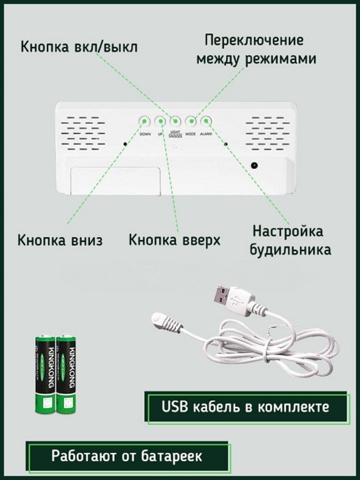 Особенности и функции будильникаДата и календарь, Термометр