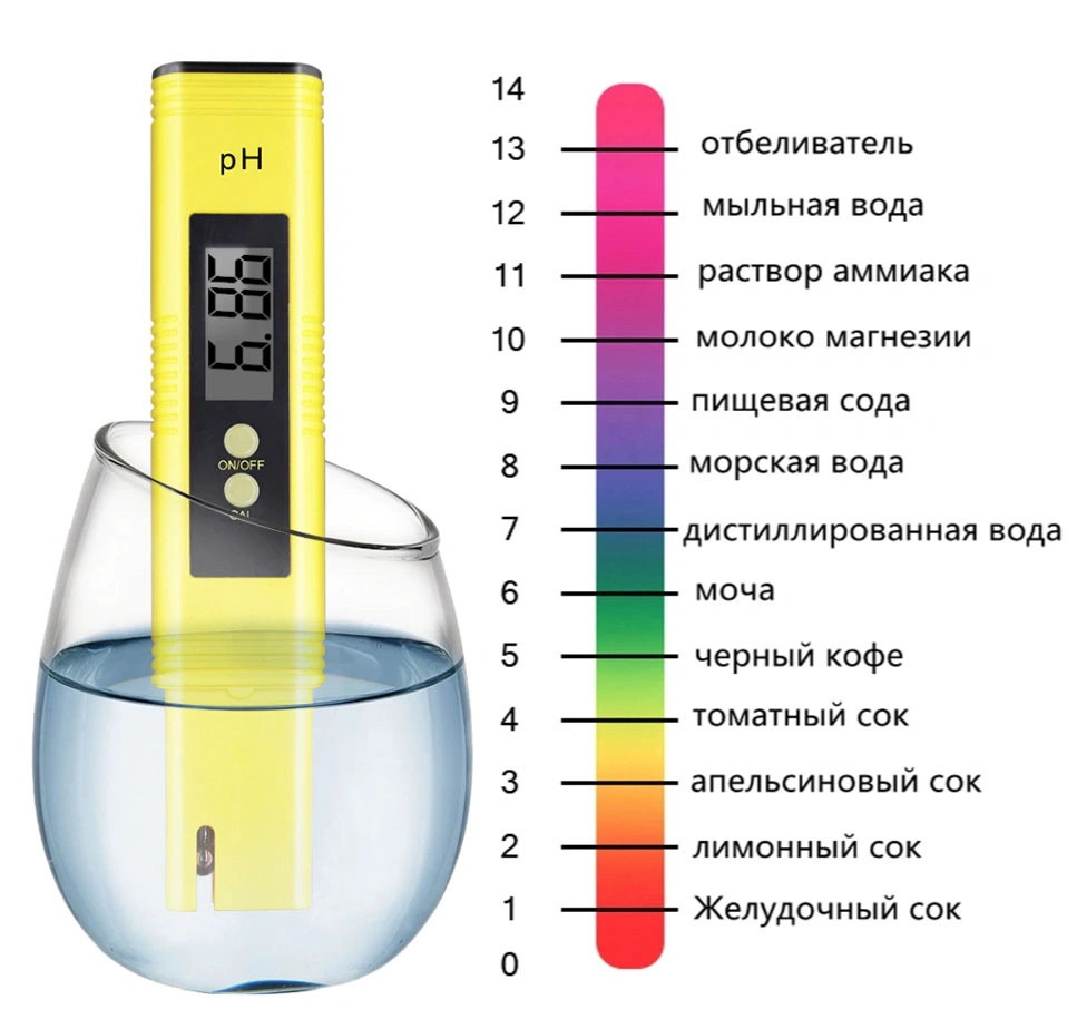 Цифровой pH-метр - это простой, надежный и очень компактный электронный прибор. Применяется для оперативных измерений уровня кислотности (жетскости) воды. Прибор выполнен в прочном пластиковом футляре с защитным колпачком для электрода. Для вывода показан