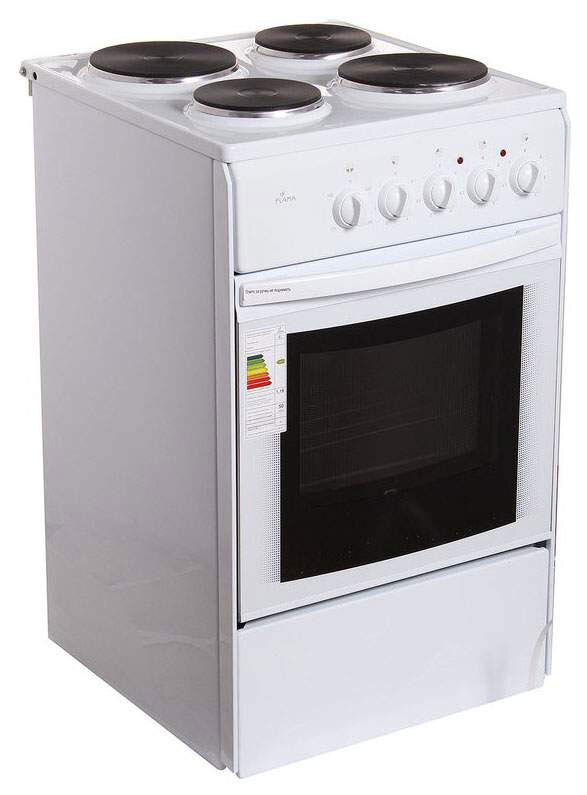 Электрическая плита FLAMA AE 1401 W белый, черный c интересным дизайном прекрасно впишется в кухонный интерьер за счет своих компактных габаритов.Плита имеет пониженный режим энергопотребления класса А, что лишний раз позволит сэкономить на электроэнергии