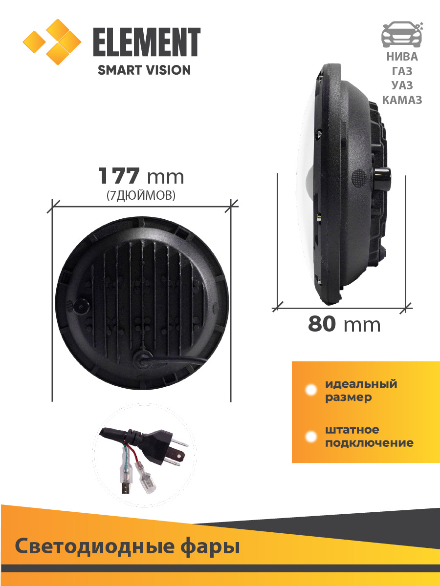 - Светодиодная фара головного света 7 дюймов. 1 шт - Установка на штатные места взамен старых фар. Режим работы: ближний свет + дальний свет, красивые ДХО +поворотник - Материал корпуса: алюминий. - Реальная мощность: 60 ватт. - Световой поток: 3500 лм. -