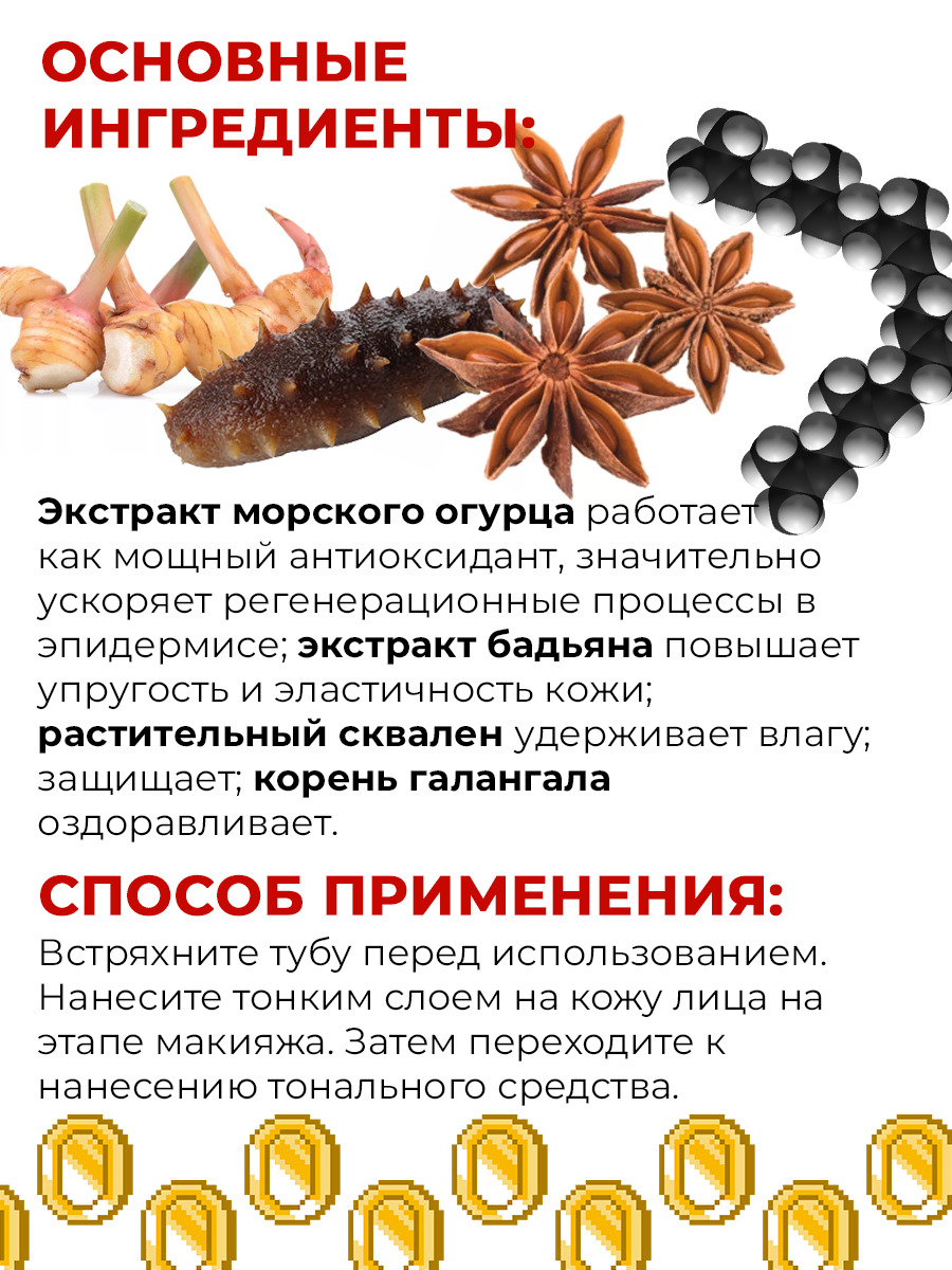 Способ примененияВстряхнуть перед использованием. Тонким слоем нанести на кожу перед нанесением макияжа.