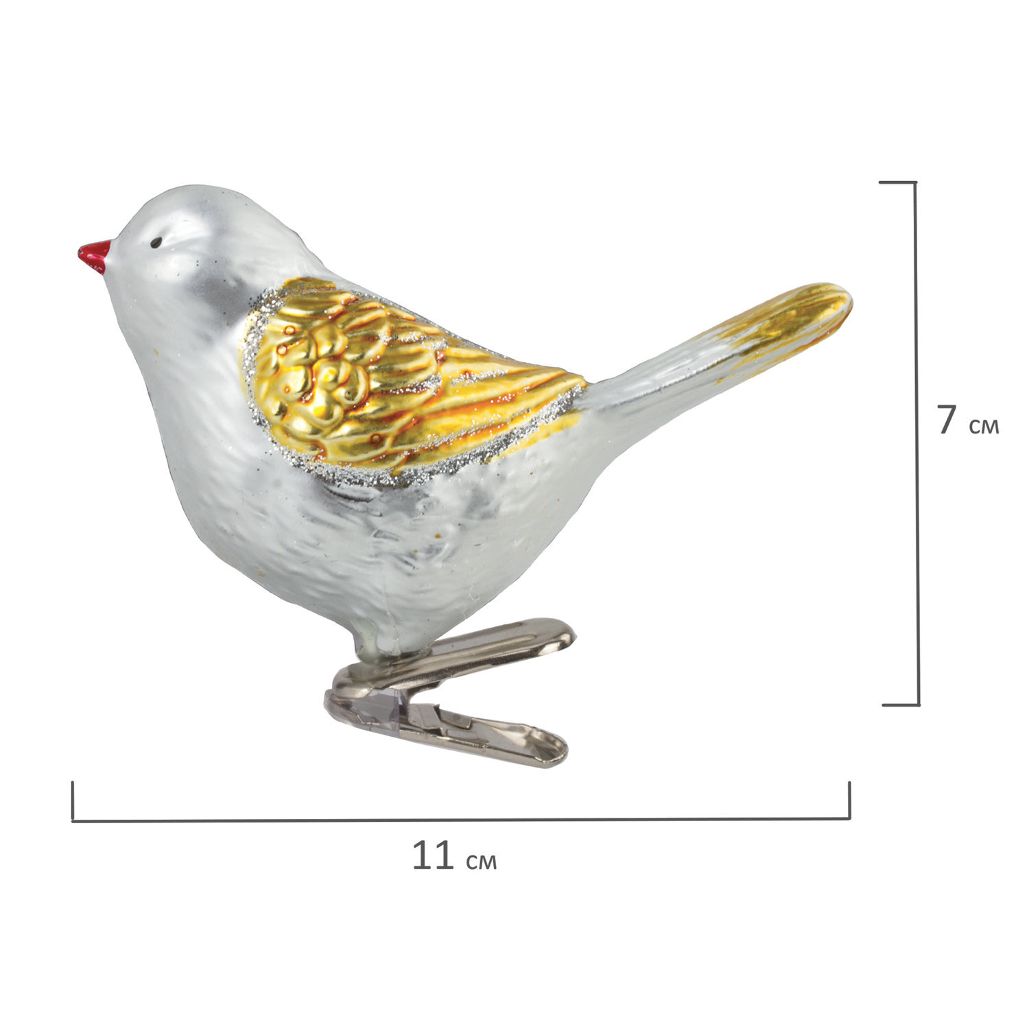 Комплектация:Украшения елочные "Птичка", НАБОР 2 шт., пластик, 11 см, цвет серебро с золотистыми крыльями (1 Набор)Описание:Набор елочных украшений станет ярким элементом декора для новогодней ели и интерьера дома. Золотистый цвет в сочетании с оригинальн