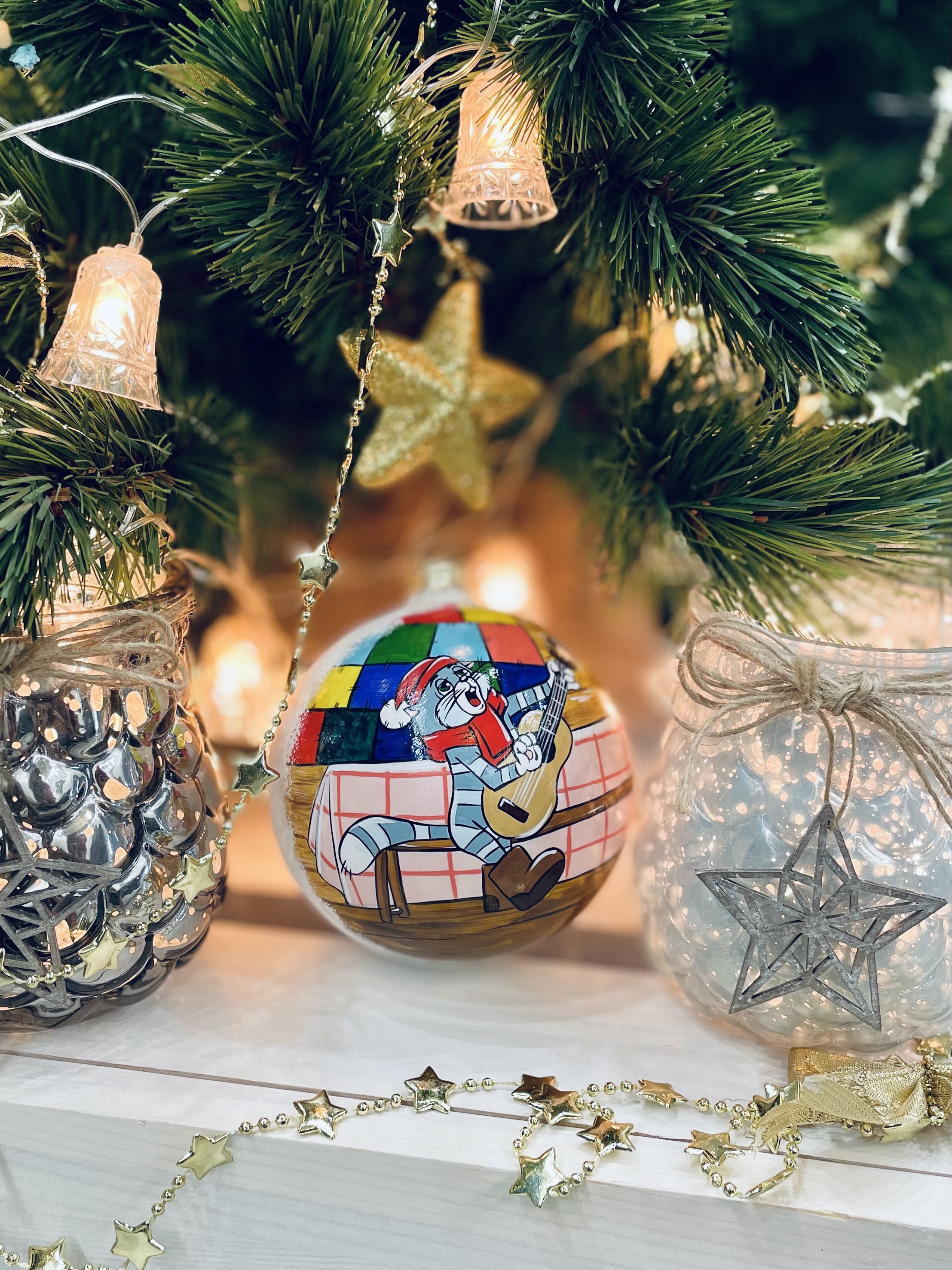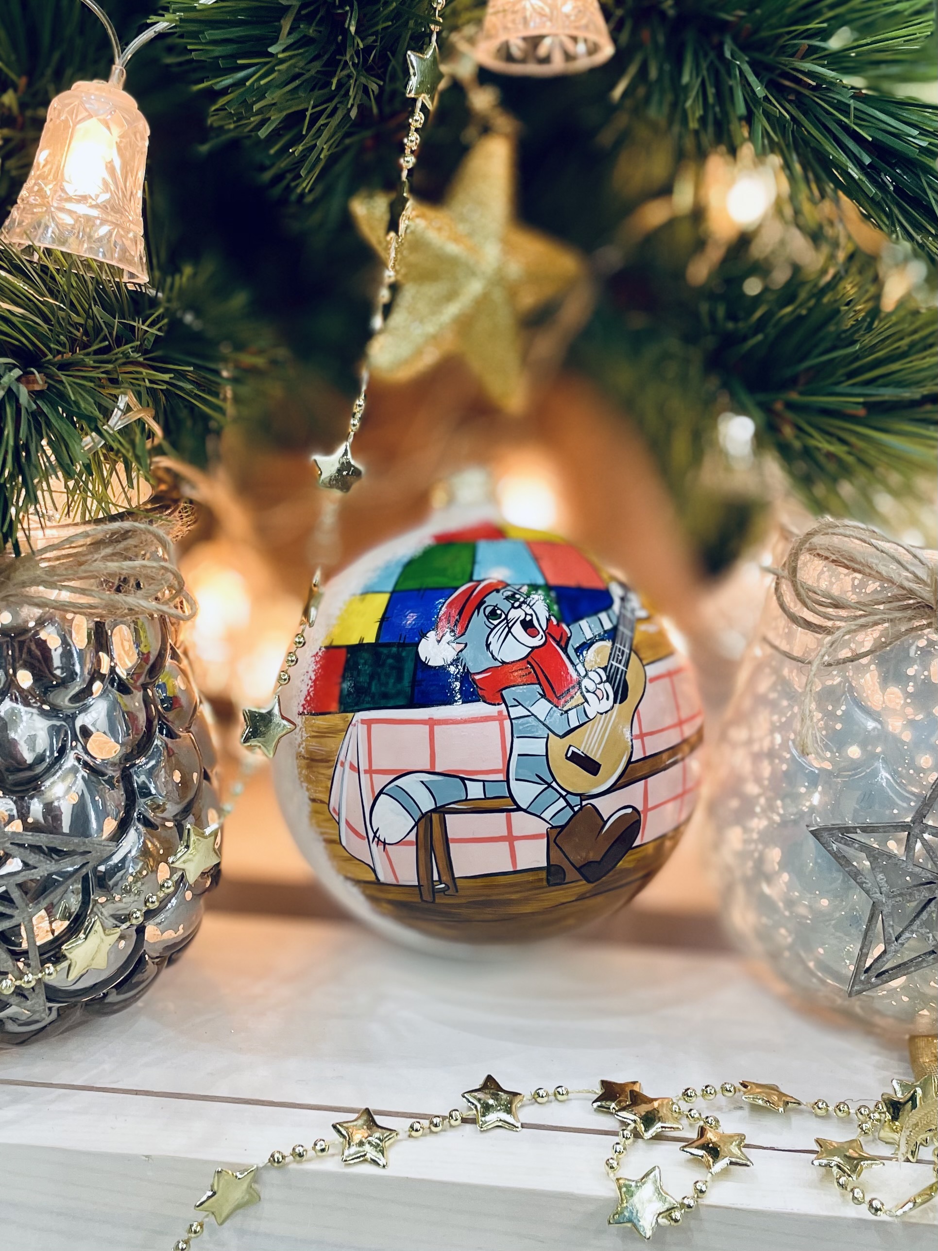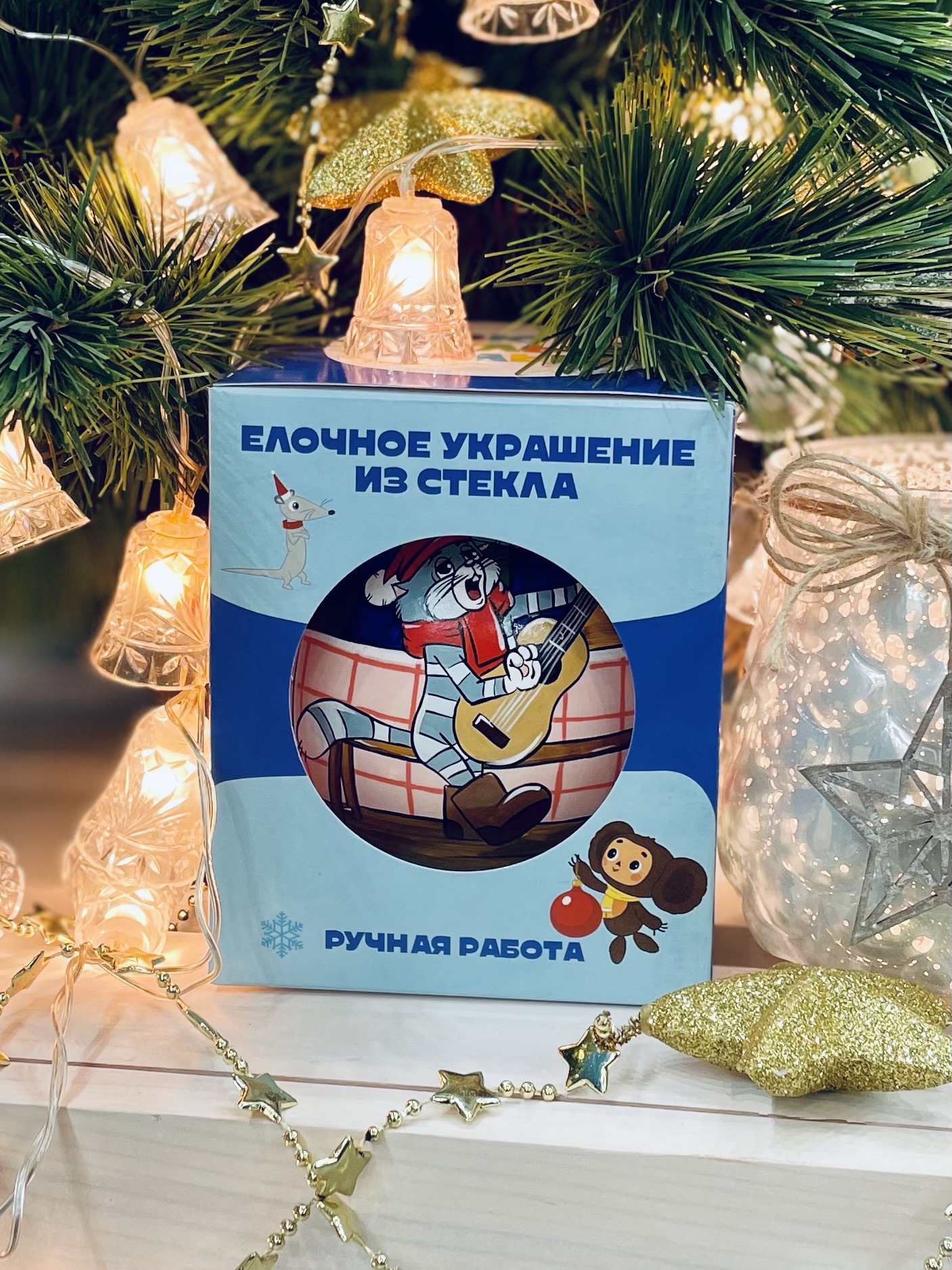 Комплектация:Шар ёлочный, упаковка. Описание:Шар стеклянный ёлочный из серии "Герои студии Союзмультфильм" Диаметр шара 10 см. Ограниченная серия оригинальных ёлочных шаров с изображением всеми любимых героев советских мультфильмов. Расписано вручную наши