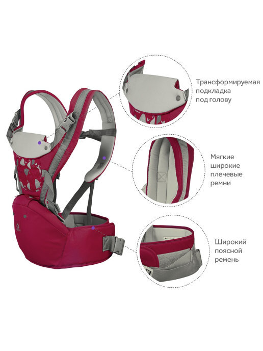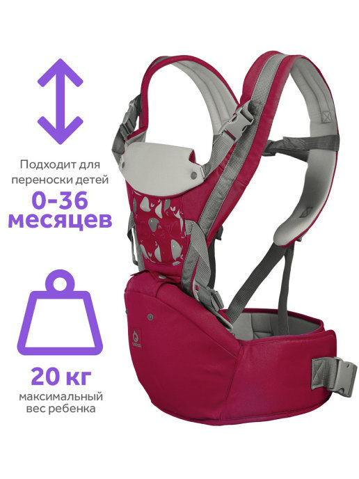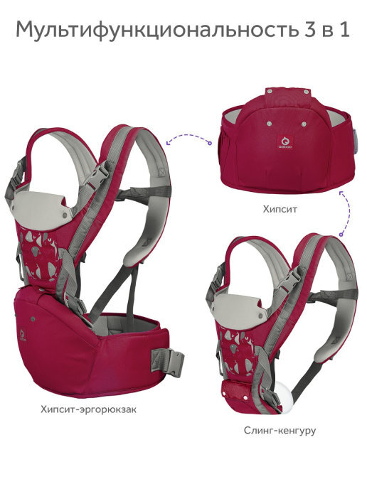 Эргорюкзак-хипсит 3-в-1 универсален, его можно использовать как хипсит или как слинг-кенгуру, отстегнув хипсит от спинки с ремнями, а можно как полноценный хипсит-эргорюкзак с удобным сиденьем. Эргорюкзак создан специально для удобства при ношении ребенка