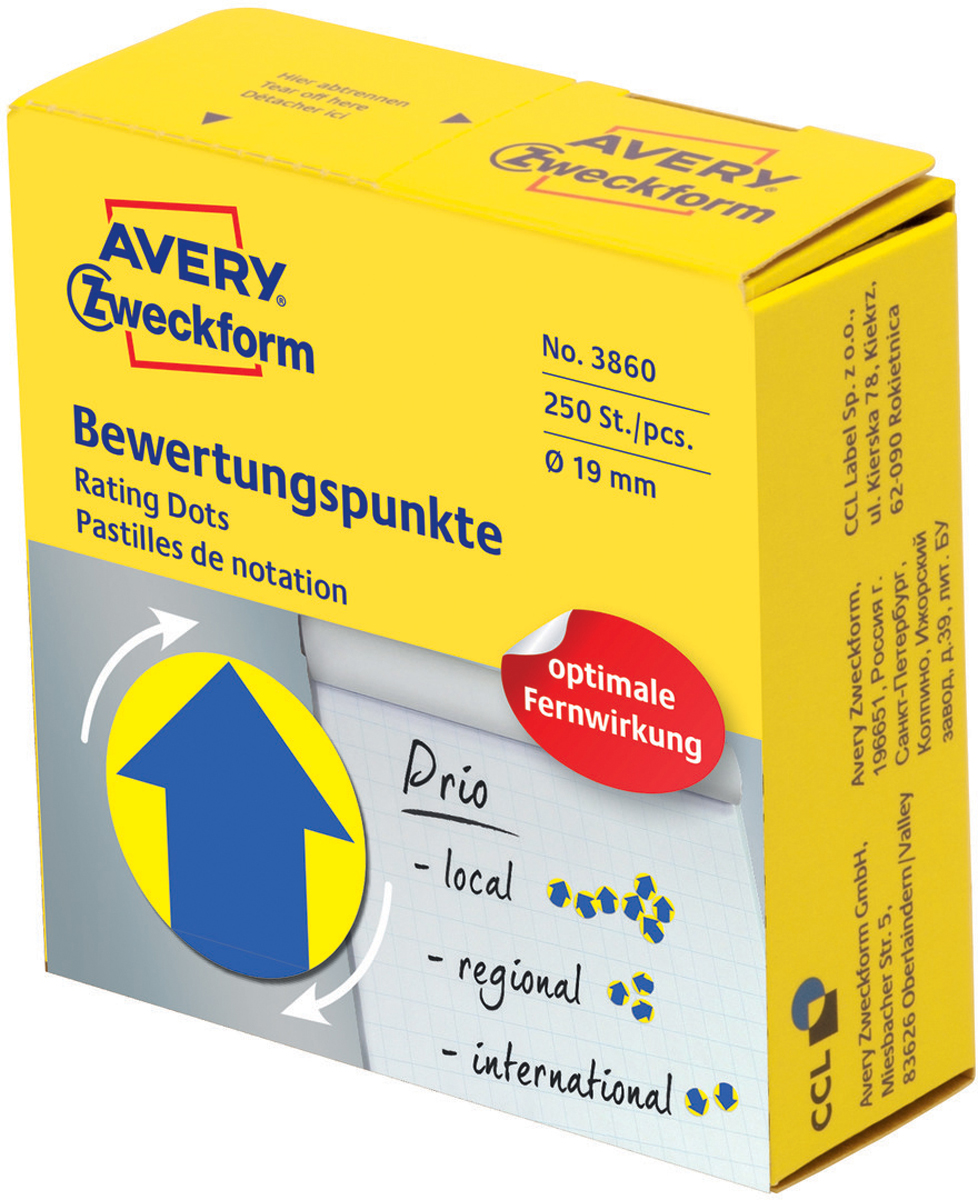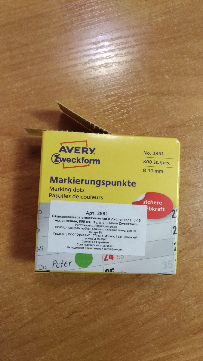 Этикетки-точки самоклеящиеся AVERY ZWECKFORM Zweckform в диспенсере, желтые, 800 шт в рулоне (d-19 мм), 1 рулон
