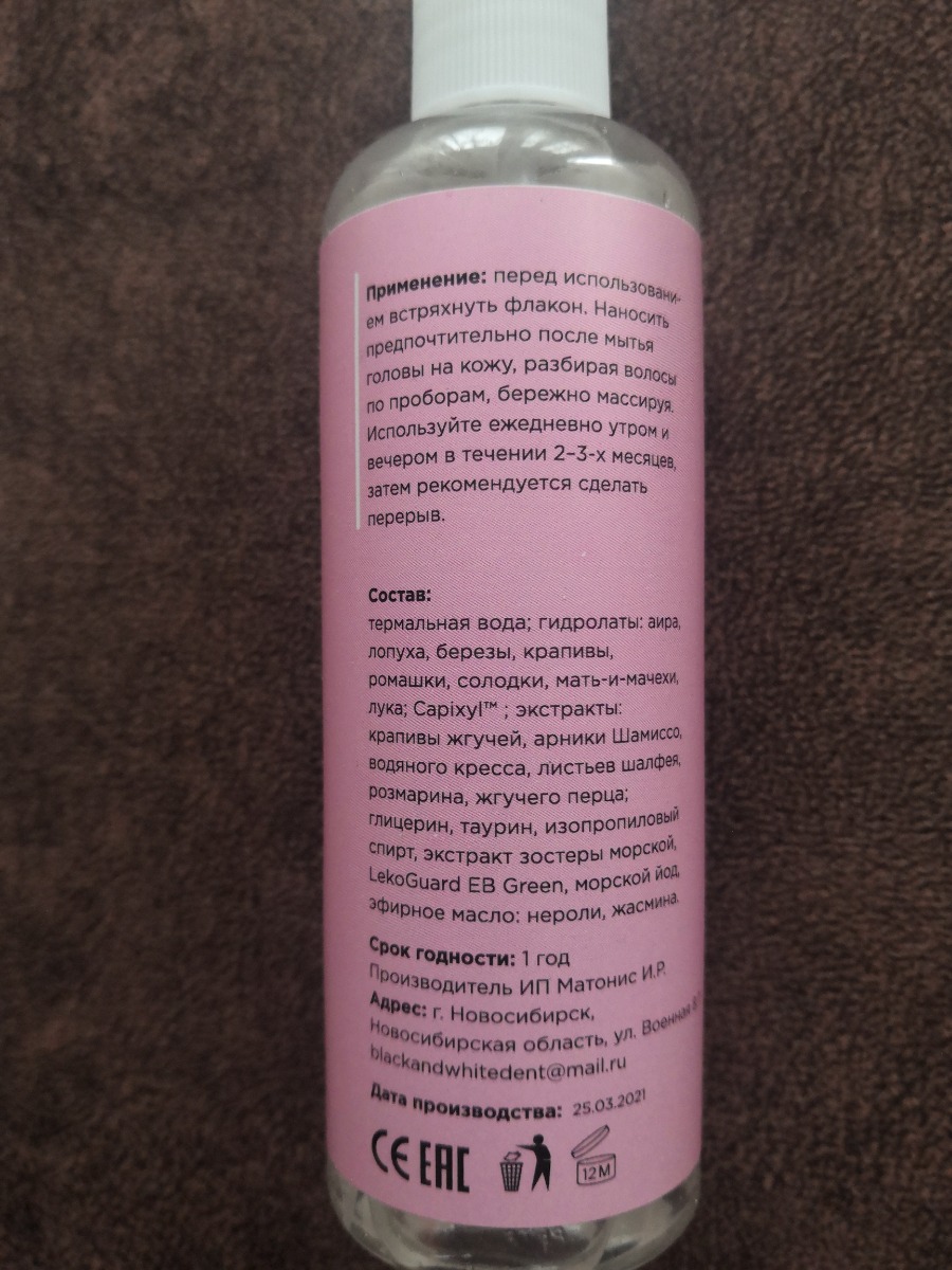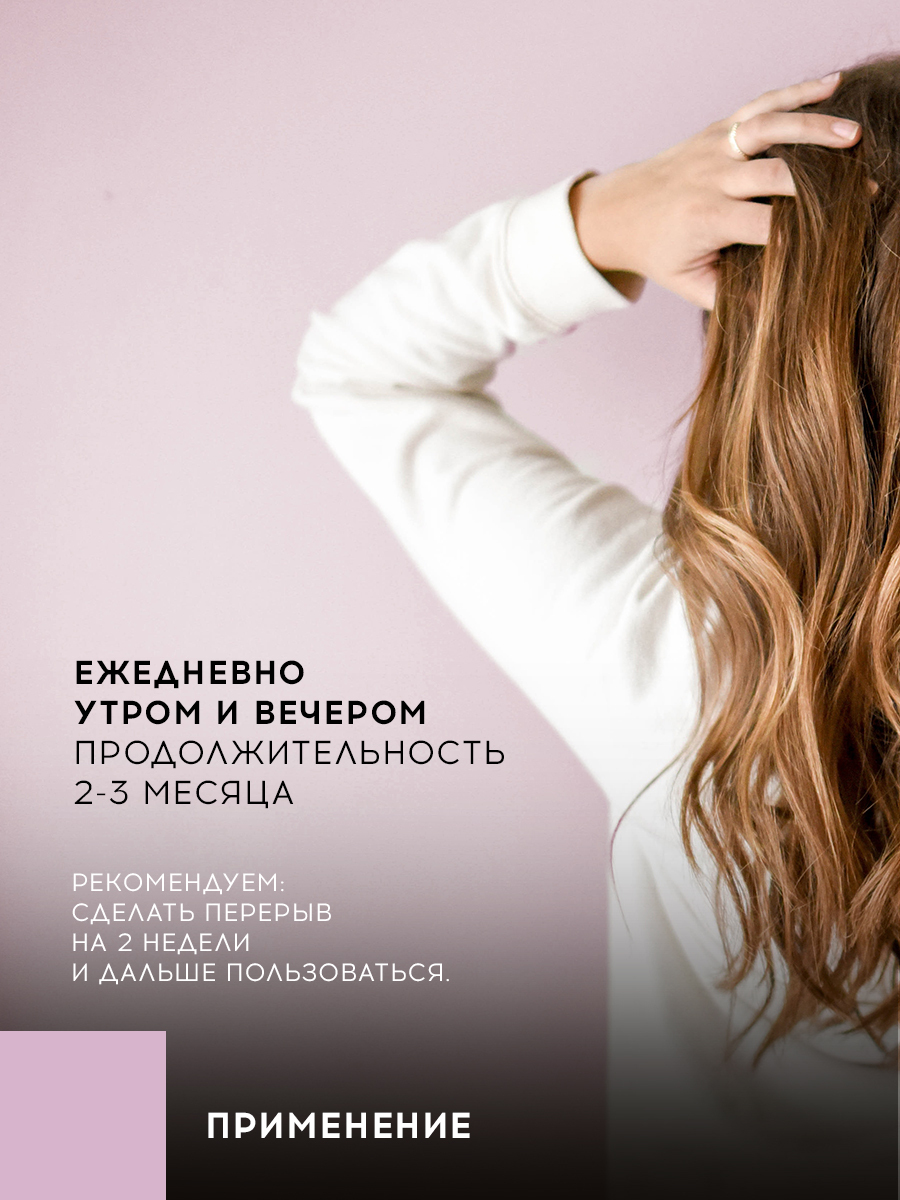 Способ примененияПеред употреблением встряхнуть флакон. Наносить предпочтительно после мытья головы на кожу, разбирая волосы по проборам, бережно массируя. Применение ежедневно утром и вечером в течении 2-3-х месяцев. Затем сделать перерыв.