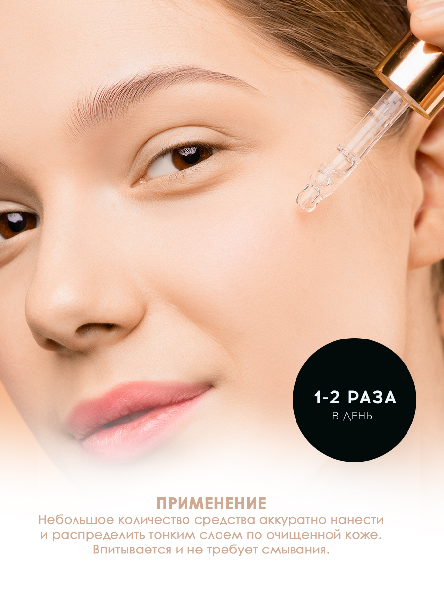 Способ примененияНебольшое количество средства аккуратно нанести и распределить тонким слоем на очищенную кожу. Сыворотка впитывается и не требует смывания. Использовать 1-2 раза в день.