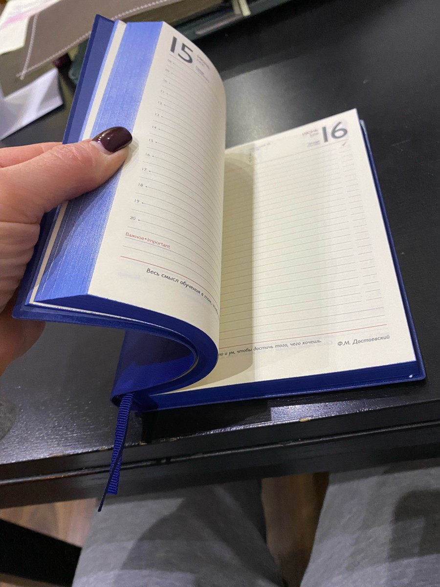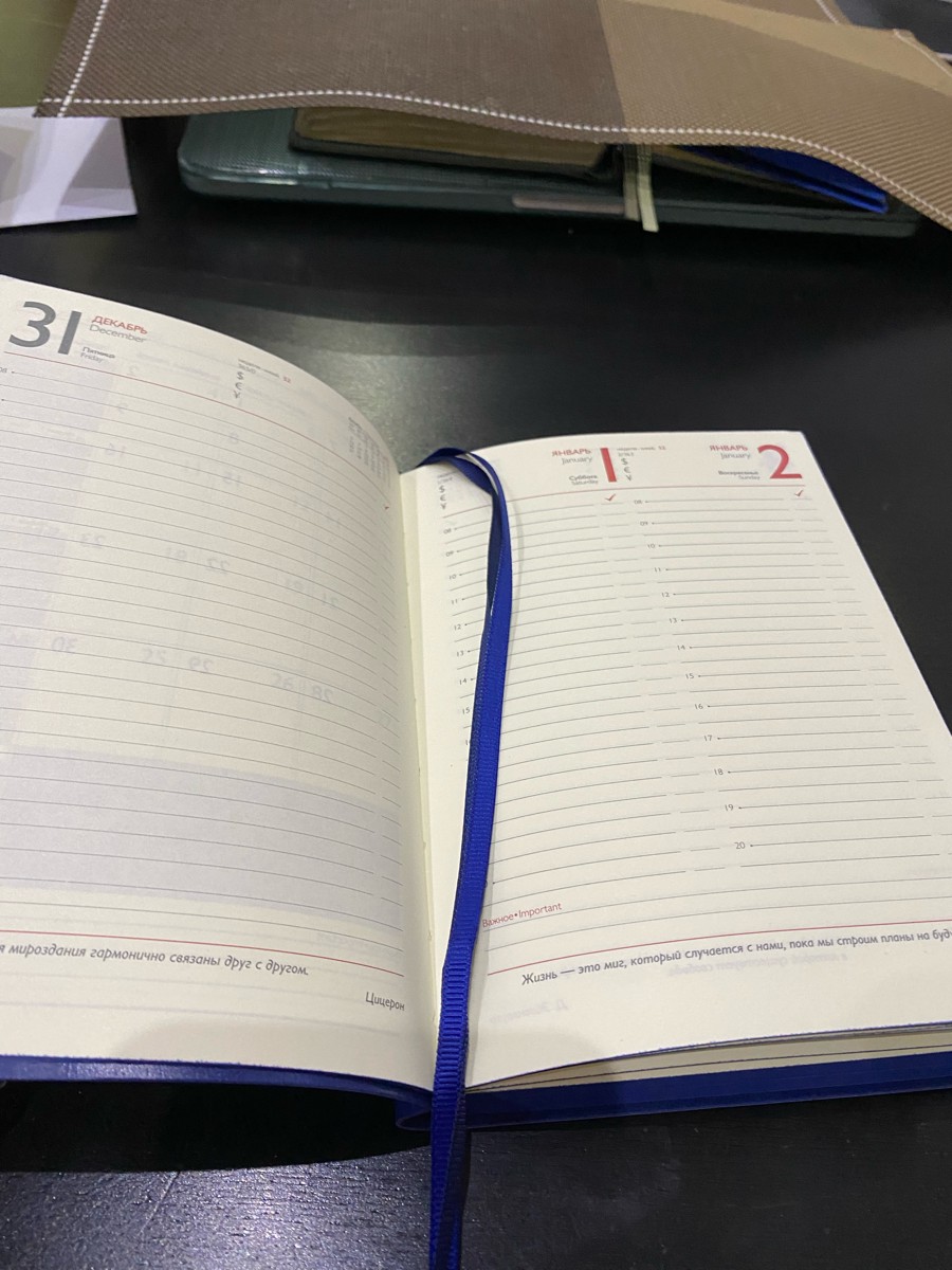 Ежедневник датированный, формат А6+ (126х174 мм), 176 листов; обложка: мягкий переплёт, ниткошвейный, блинтовое тиснение, в блоке использованы мотивирующие цитаты, скруглённый корешок, прямые углы обложки, красочность форзаца: печать пантоном, отделка сре