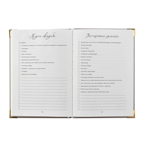 Еженедельник невесты на шесть месяцев:обложка экокожа200 страниц1 страница — 1 неделязакладкаподсказки невестамНаш свадебный планировщик невесты поможет вам ничего не забыть, не потерять и все успеть. Он рассчитан на шесть месяцев и в отличии от любых дру