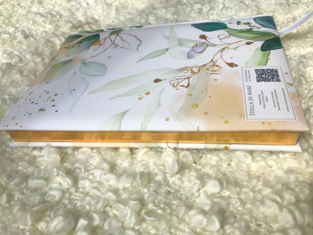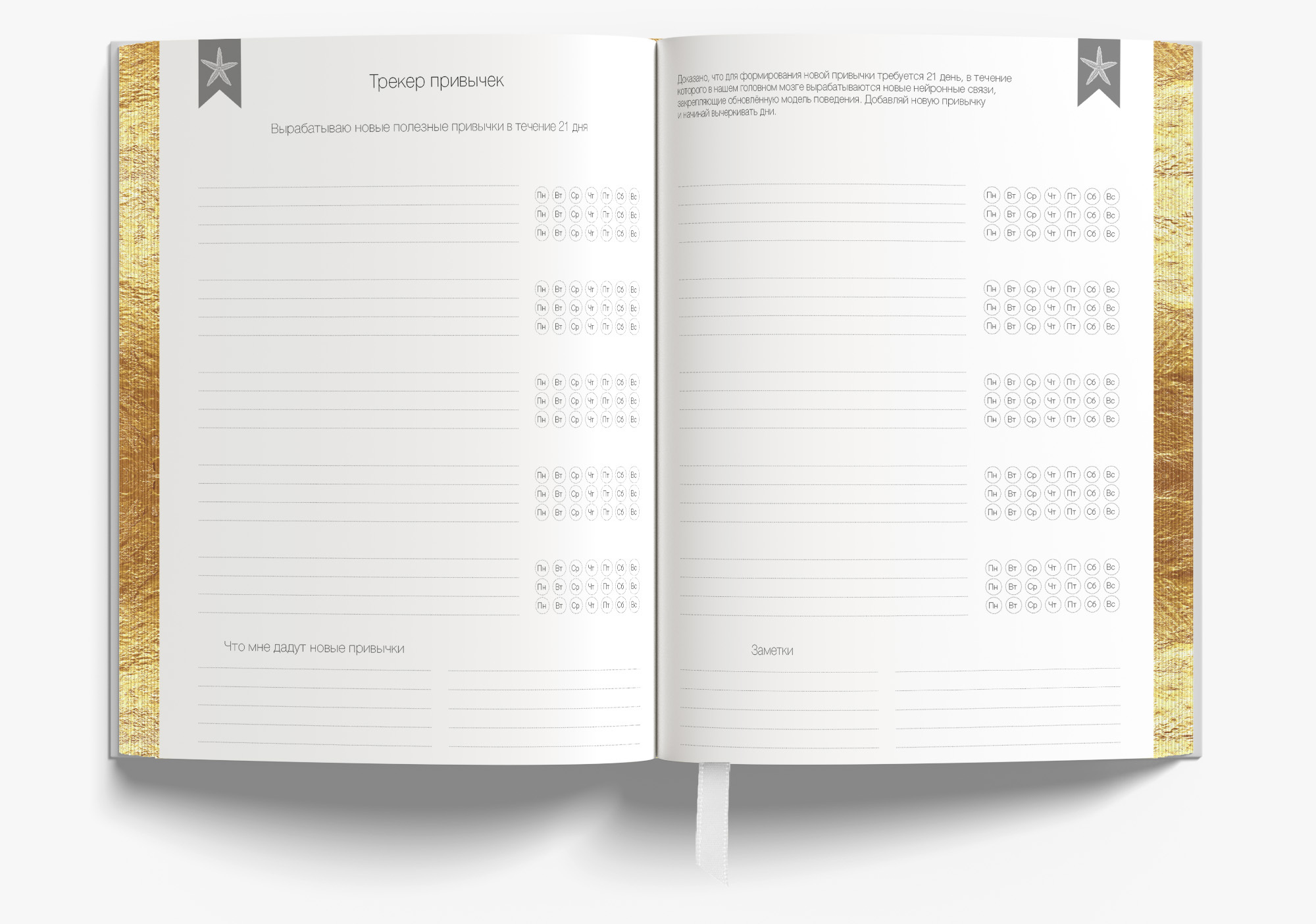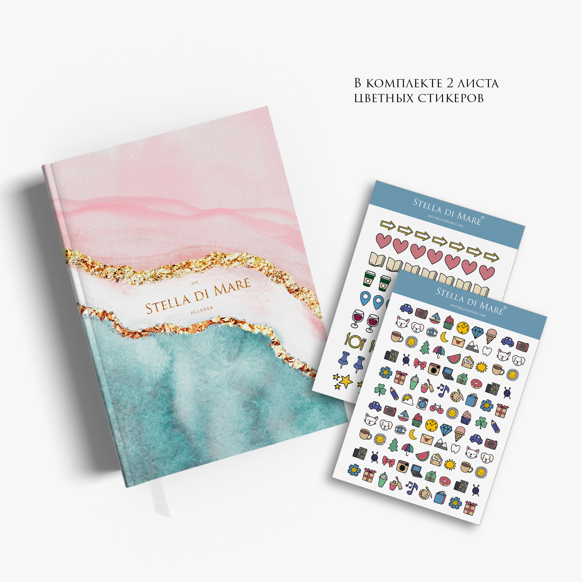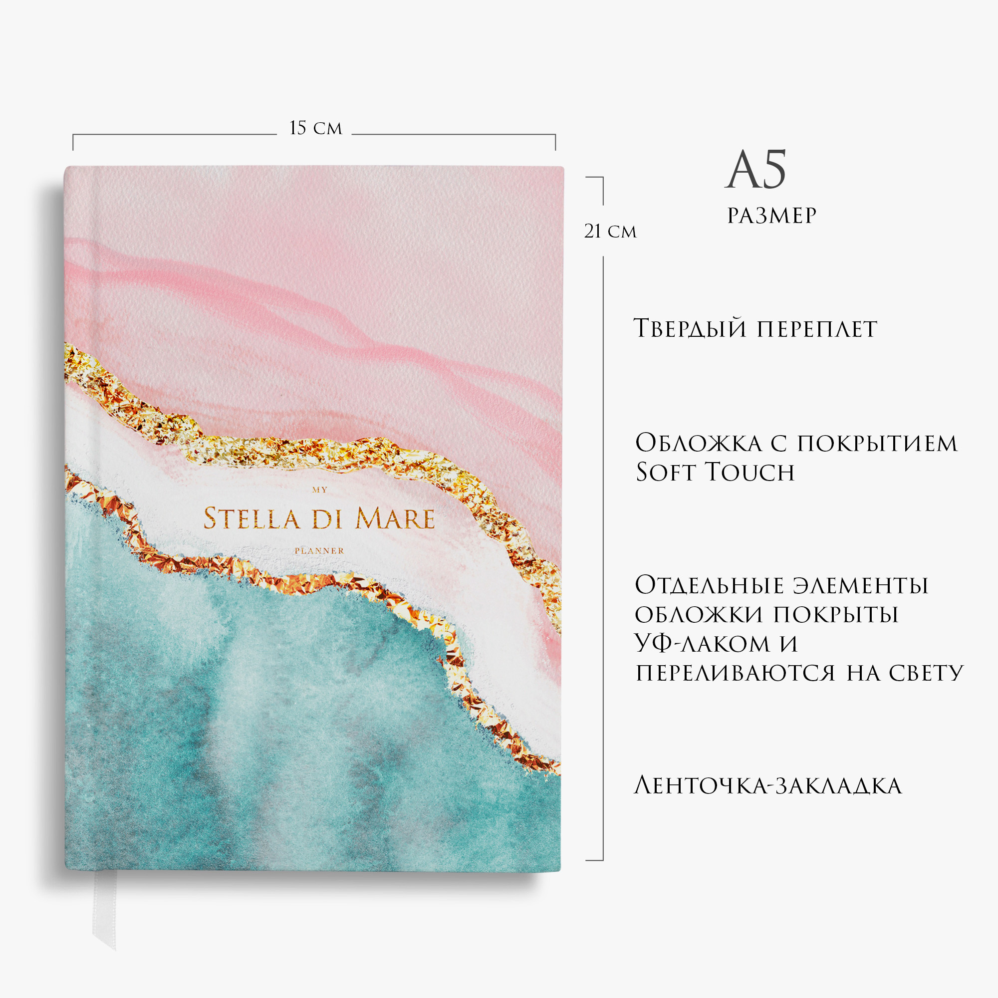 Ежедневник недатированный на 1 год в твердом переплёте, собранный вручную в МосквеОбложка Soft Touch с очень приятными тактильными качествами на тонком смягчающем подкладеТиснение золотом, покрытие УФ-лаком, золочёные торцы, ленточка-закладка, карман, 2 л