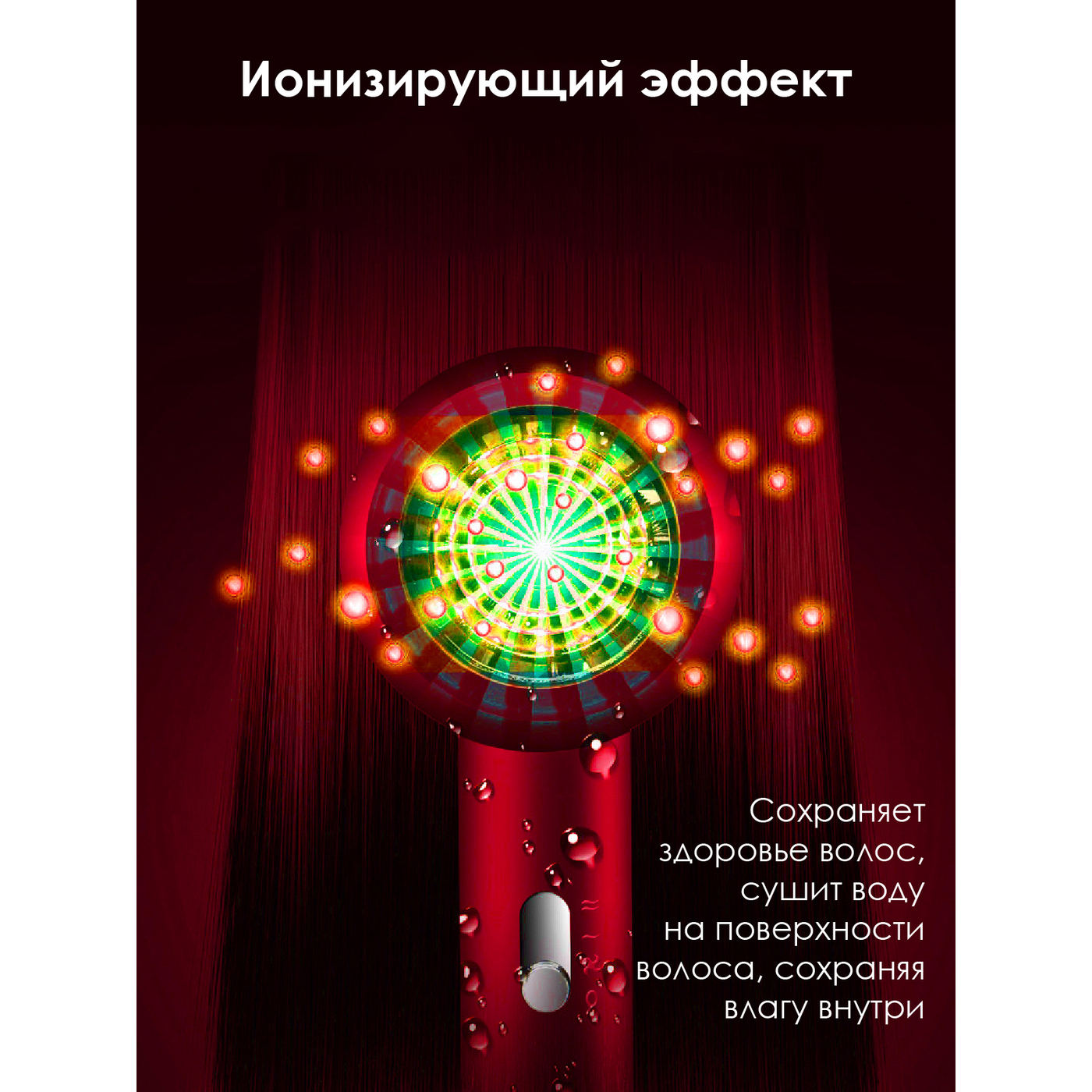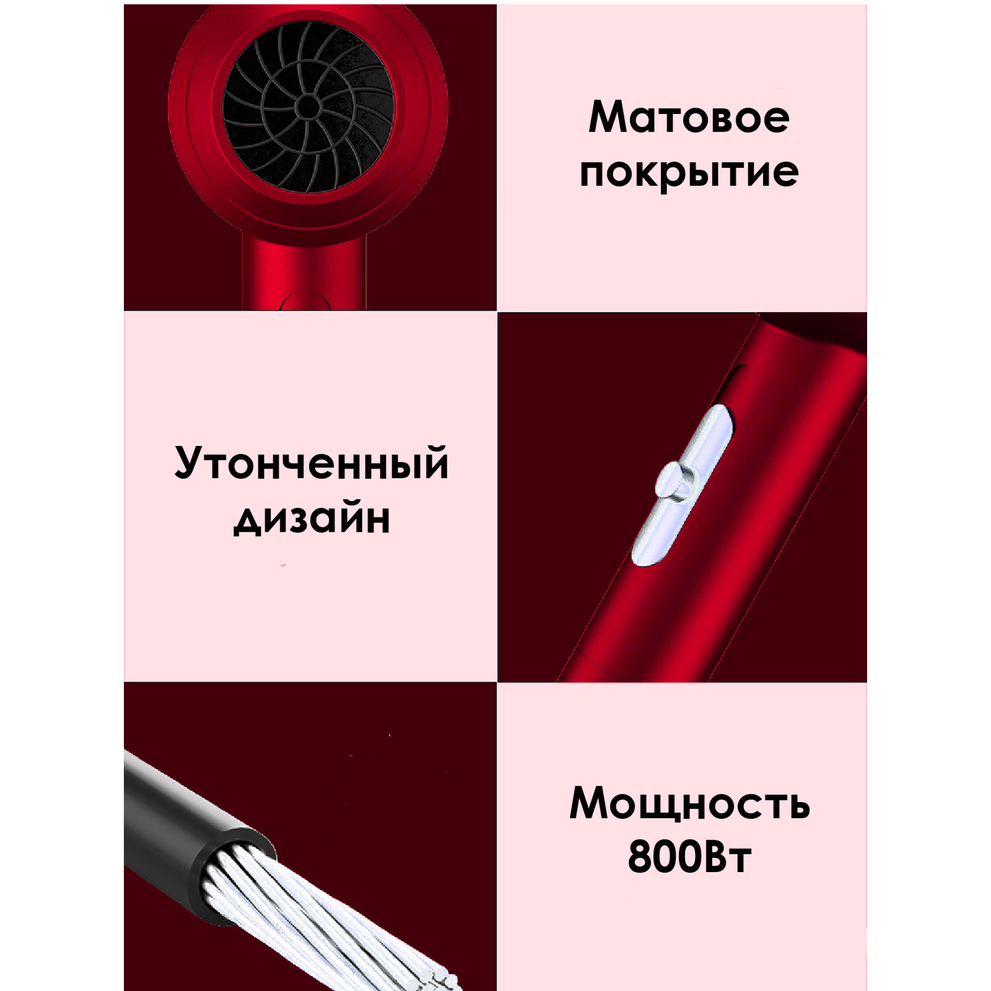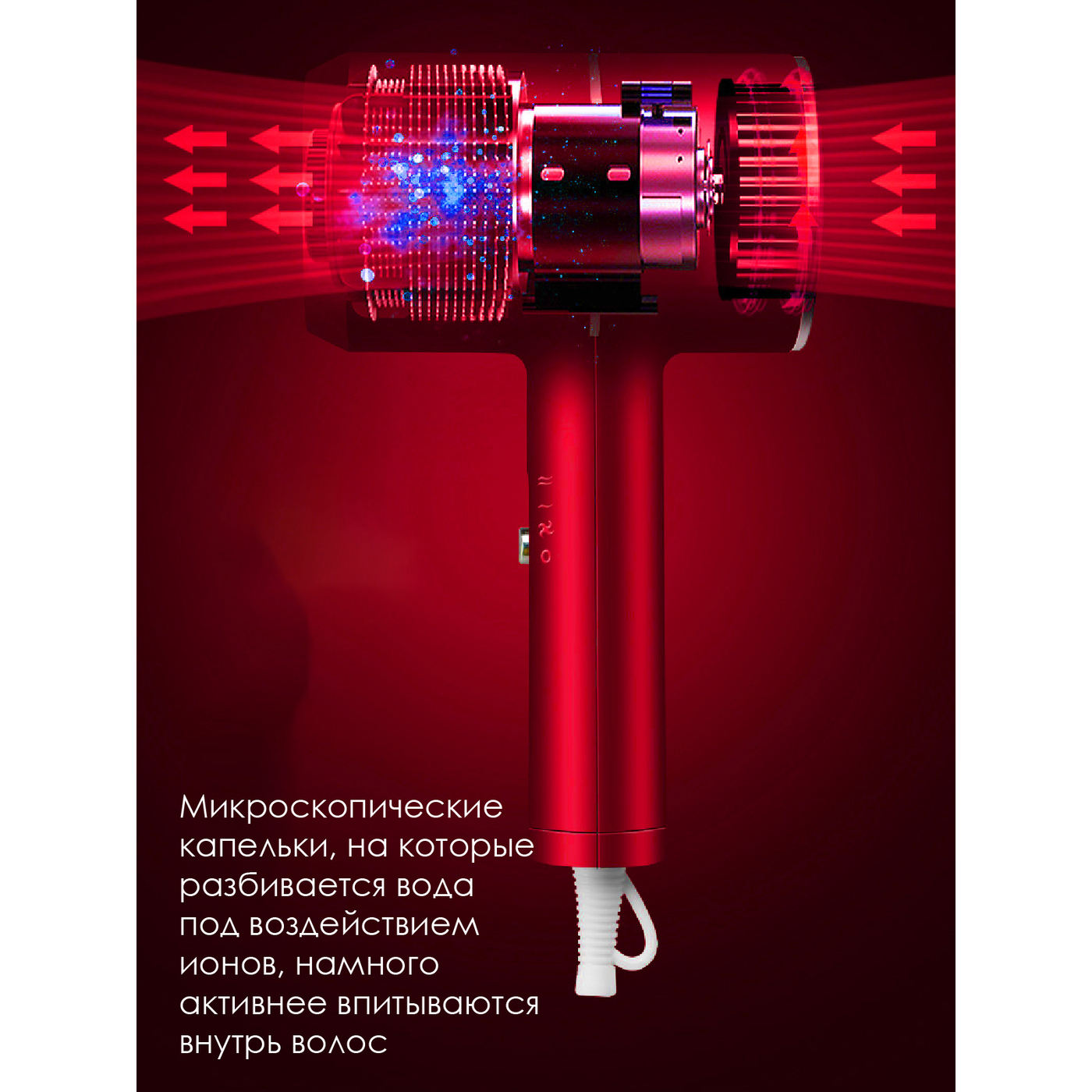 Особенности конструкции фена, выпрямителя волосКомпактный размер, Петля для подвешивания, Коническая форма нагревателя