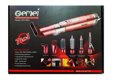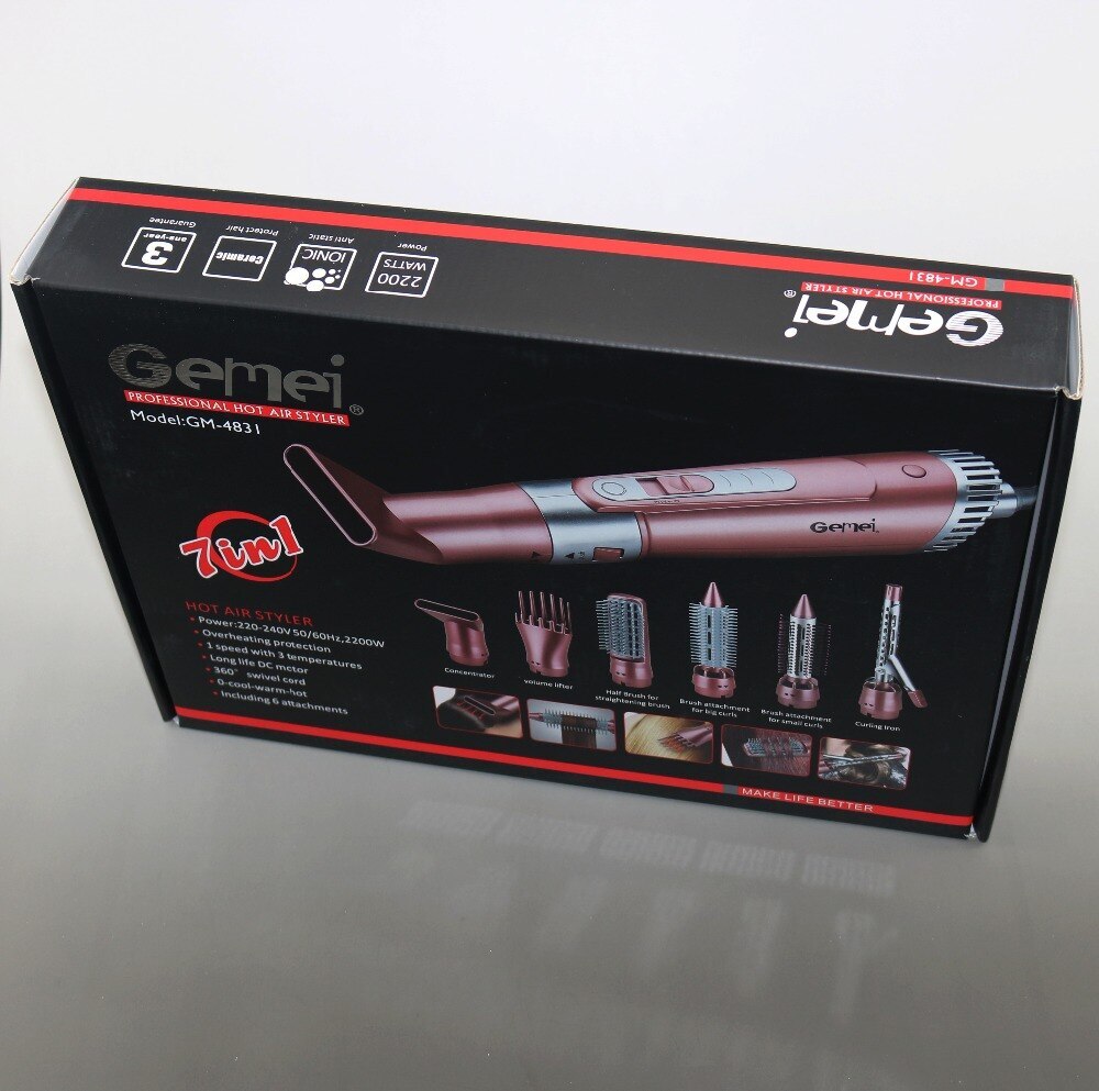 Фен-щетка 7 в 1 Gemei GM-4831 - универсальный мощный стайлер со множеством функций для создания различных причесок. Это многофункциональный прибор, который поможет девушкам выбрать прическу на любой вкус. Это мелкие и крупные кудри ,объем и многое другое.