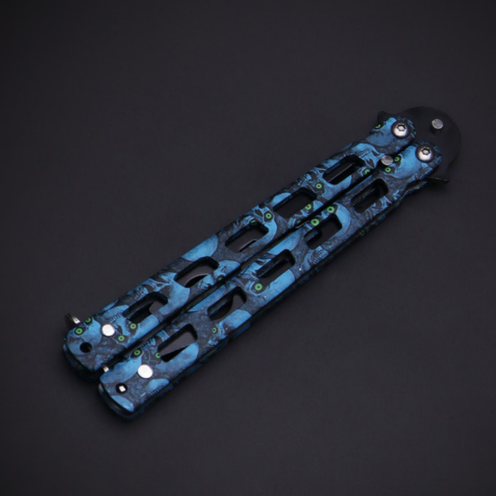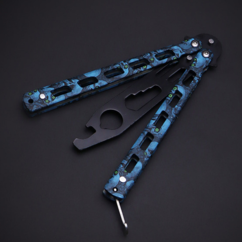 Тренировочный нож-бабочка - это специальное безопасное орудие для новичков во флиппинге. Механизм складывания балисонга для тренировок полностью идентичен стандартному острому изделию, отличает конструкцию лишь закругленное тупое лезвие. Безопасный тренир