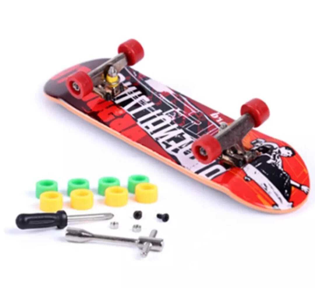 Фингерборд — уменьшенная копия (в масштабе примерно 1 : 8) скейтборда, предназначенная для катания на пальцах и выполнения трюков, идентичных скейтборду, дома. Существует несколько версий появления фингерборда. На фингерборде делаются все те же трюки, что