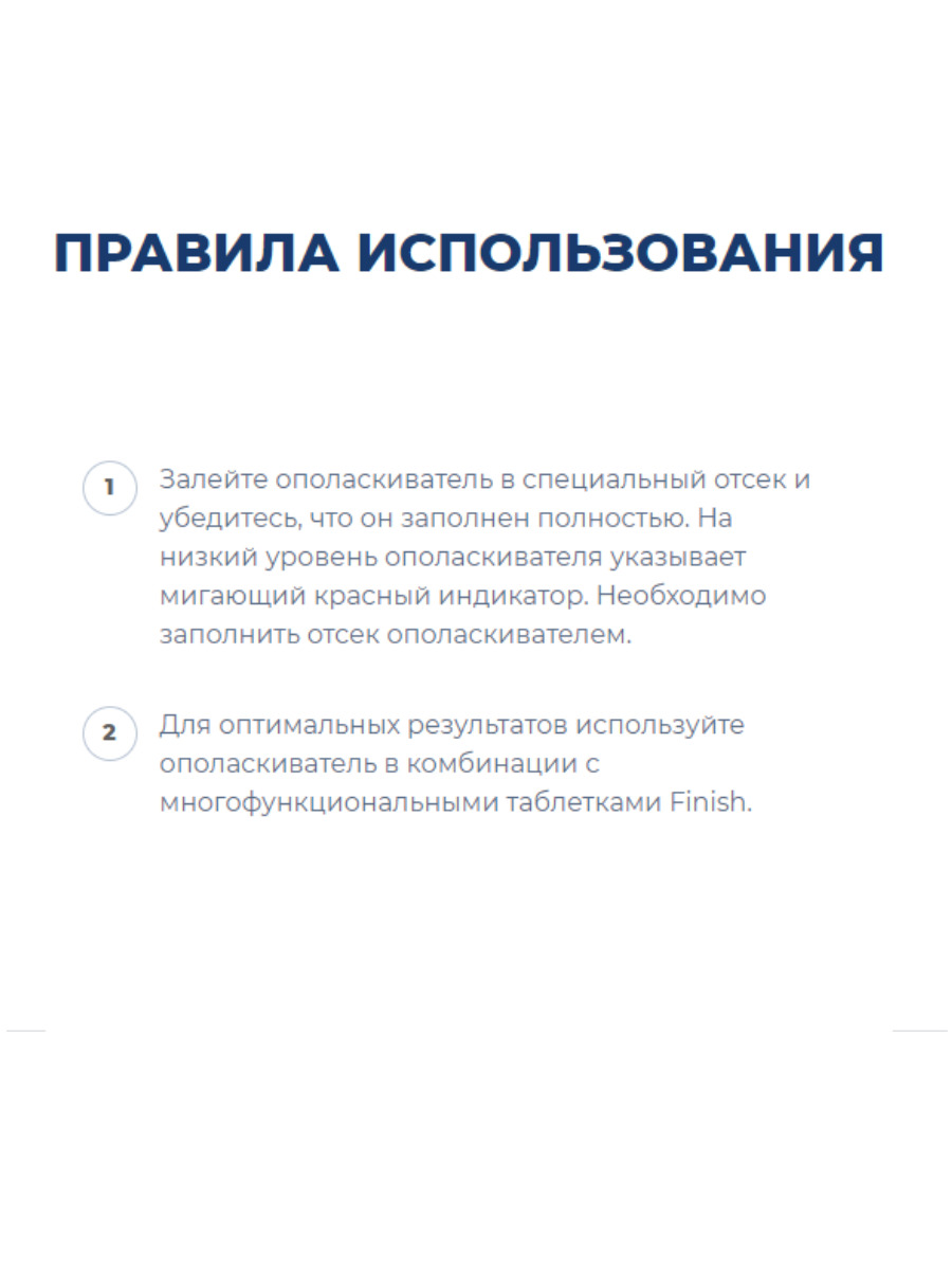 Состав:5% или более, но менее 15%: неиногенные ПАВконсервантыОписание:При мытье в посудомоечной машине на посуде могут остаться подтеки и следы от капель воды. Для борьбы с этой проблемой и ускорения процесса сушки рекомендуем добавлять ополаскиватель Fin