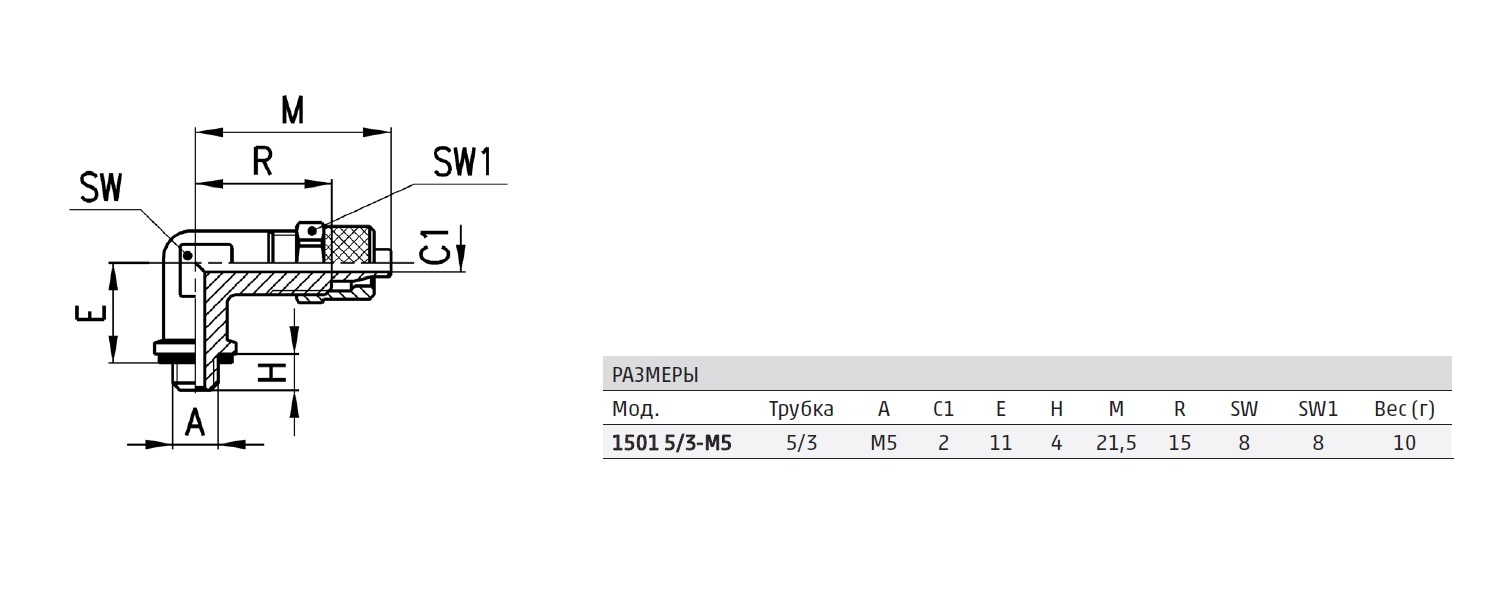 Диаметр трубки (наруж/внутр) 5/3 ммРезьба M5x0,8Фитинги с накидной гайкой для пластиковых трубок. Эти соединения могут использоваться с жесткими нейлоновыми трубками. Накидная гайка затягивается вручную или гаечным ключом. Специальная форма конуса обеспеч