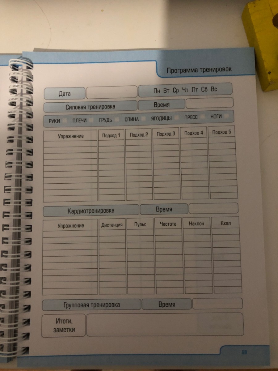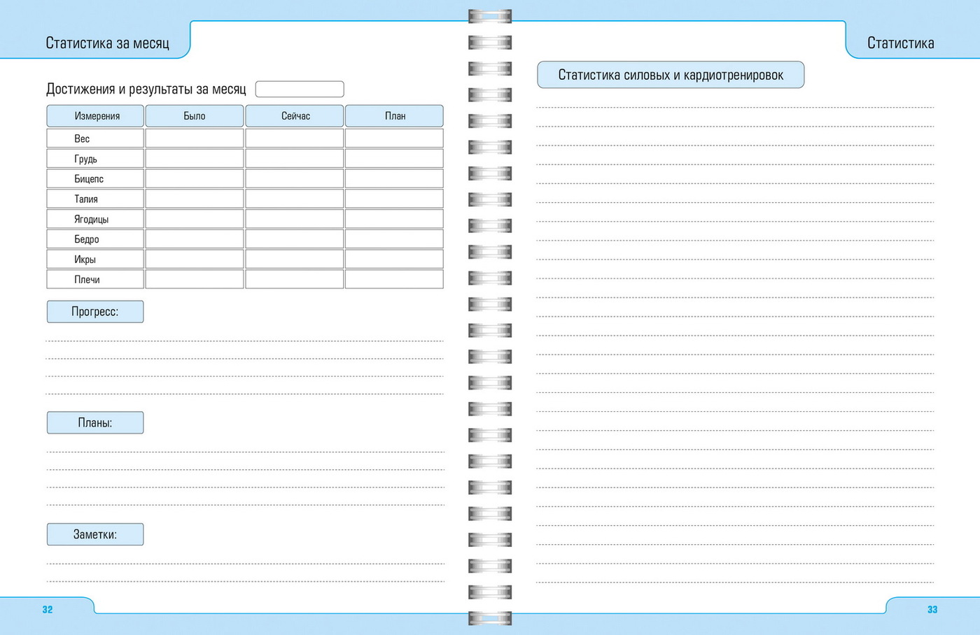 Фитнес дневник А5 формата.Количество листов: 96. Обложка: твердый переплет с глянцевой ламинацией. Дополнена спецэффектом в виде тиснения фольгой. Внутренний блок: офсет 70 гр., 2-цветный, оригинальный блок, справочная информация.Дневник тренировок – это