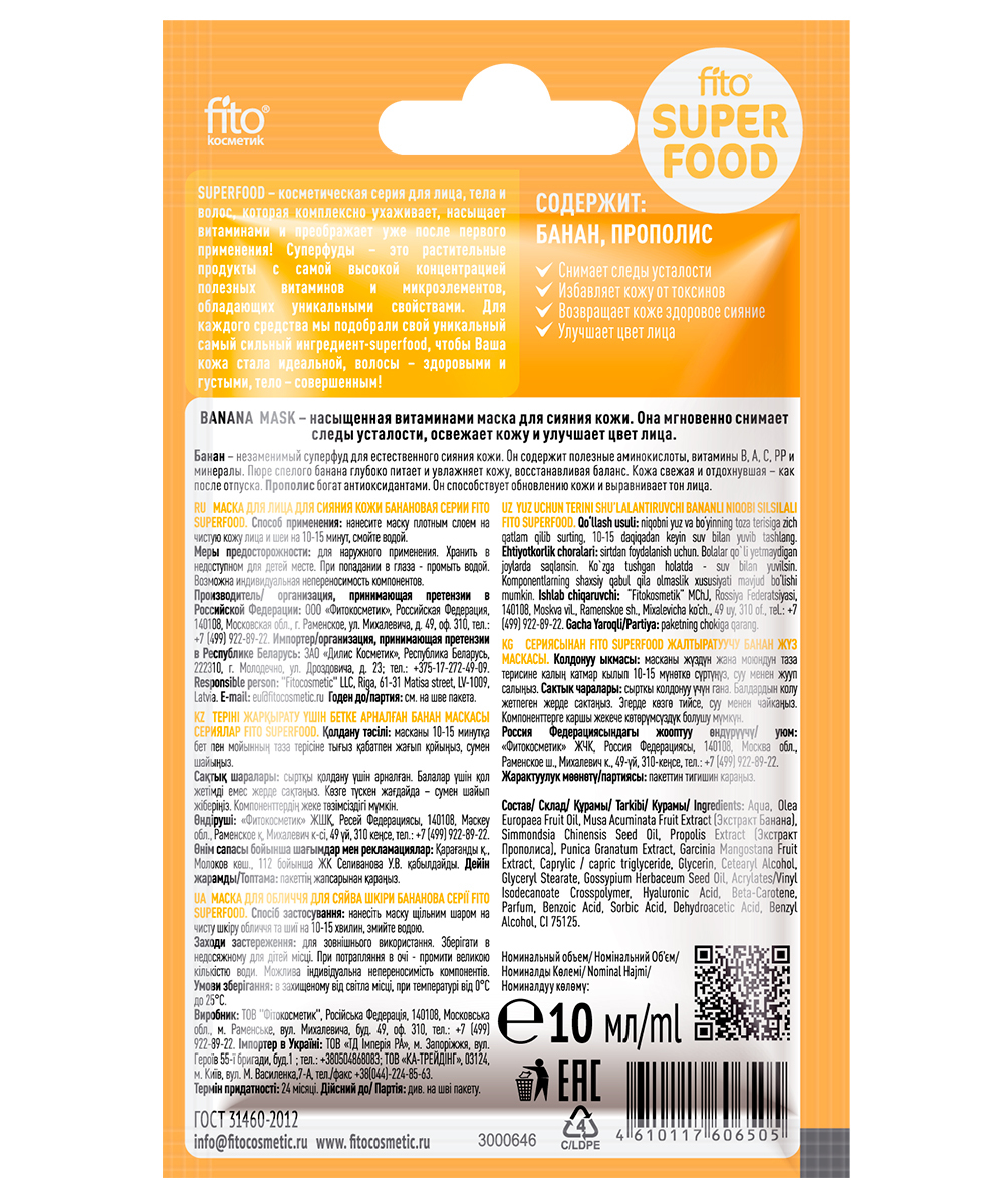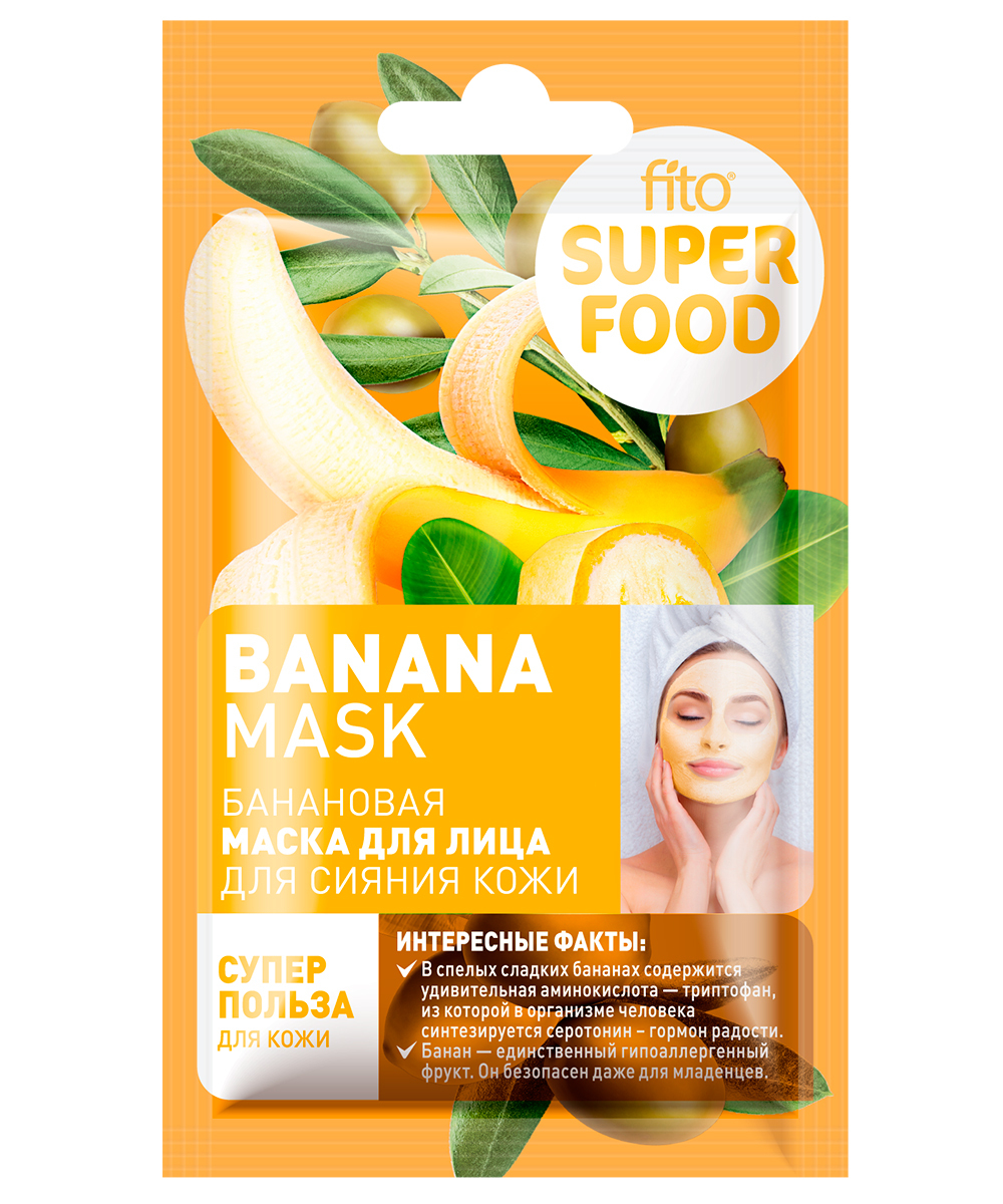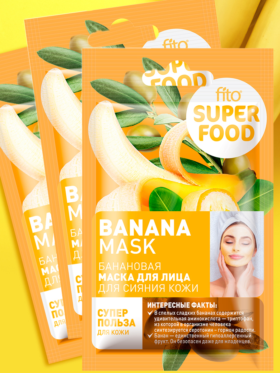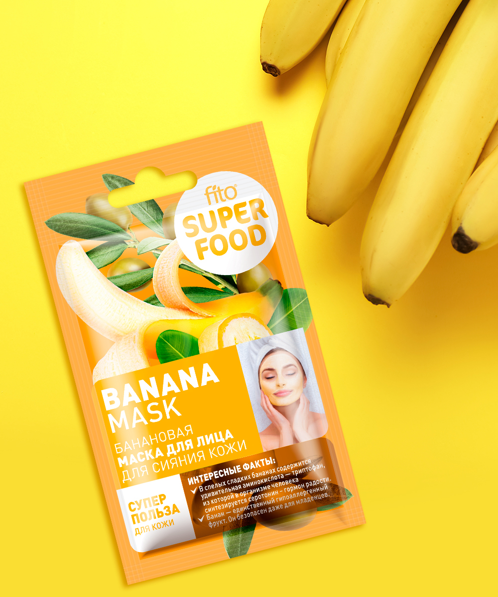 Banana mask – насыщенная витаминами маска для сияния кожи. Она мгновенно снимает следы усталости, освежает кожу и улучшает цвет лица. Банан – незаменимый суперфуд для естественного сияния кожи. Он содержит полезные аминокислоты, витамины В, А, С, РР и мин