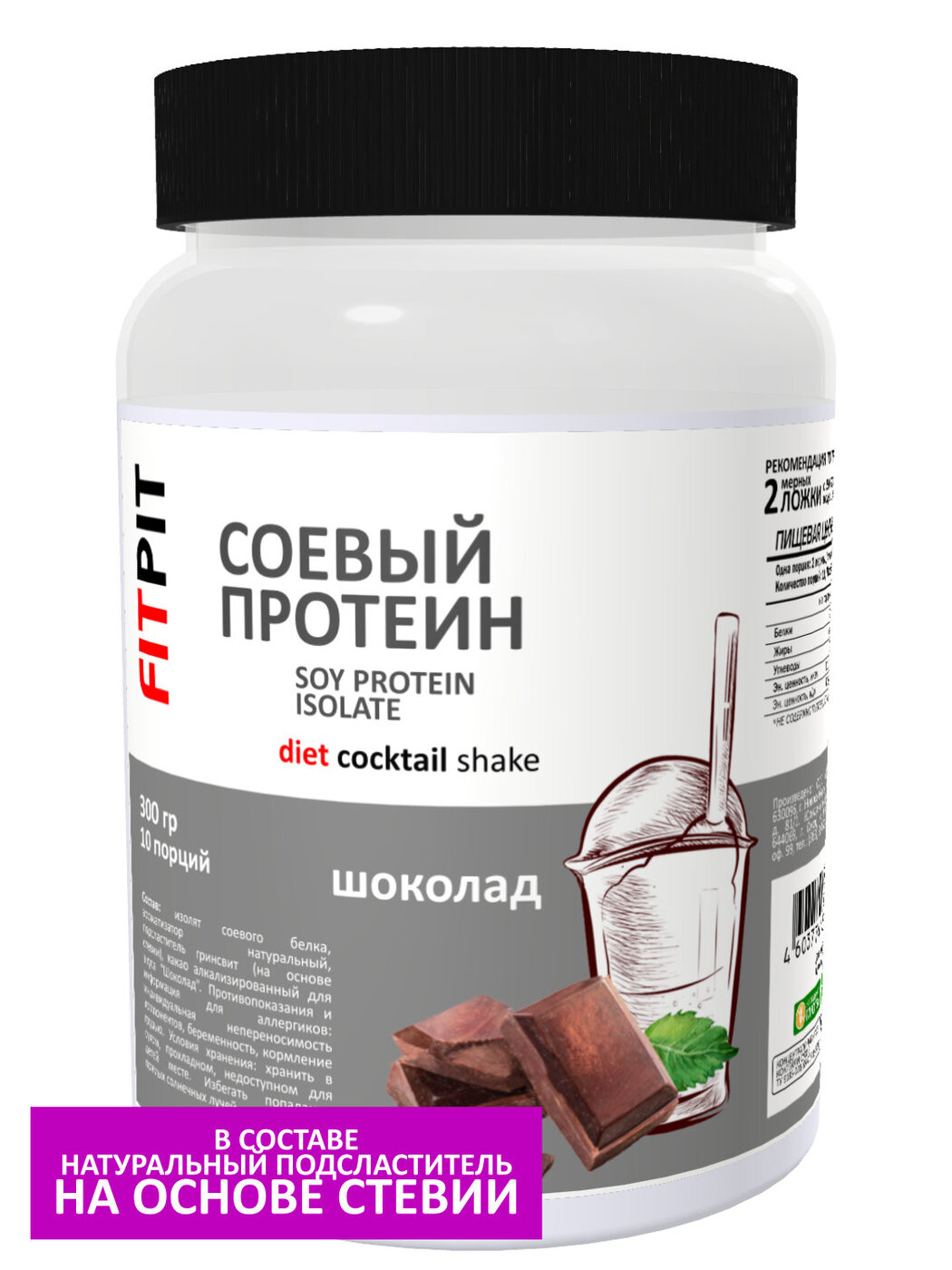СоставИзолят соевого белка, натуральный ароматизатор, подсластитель на основе стевии