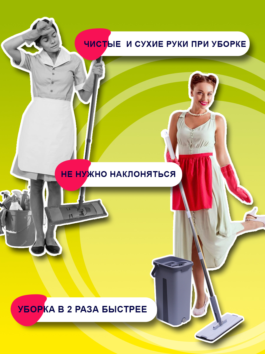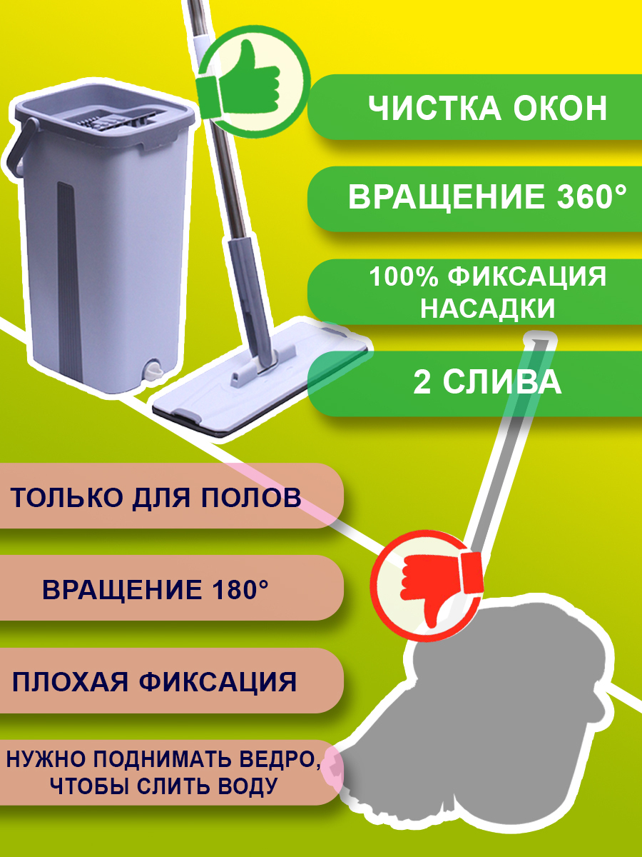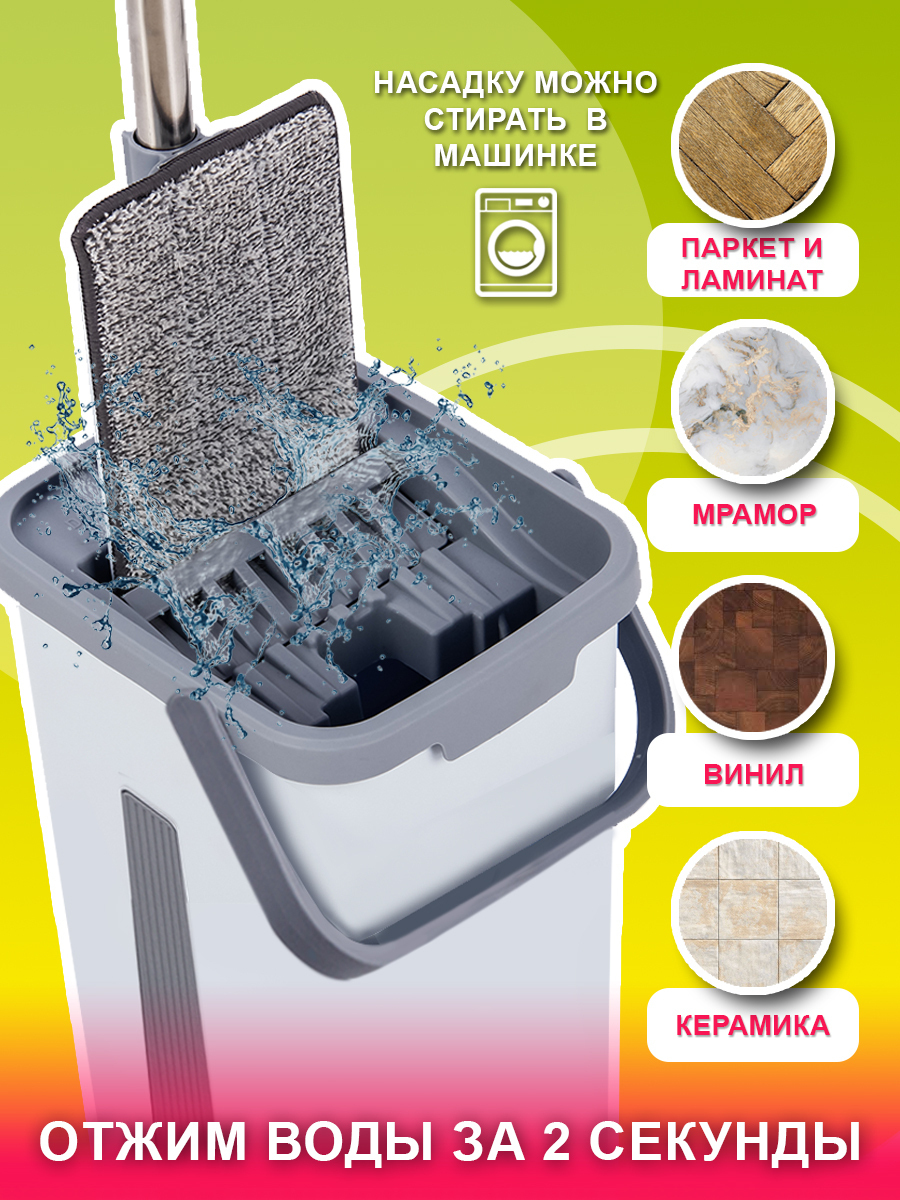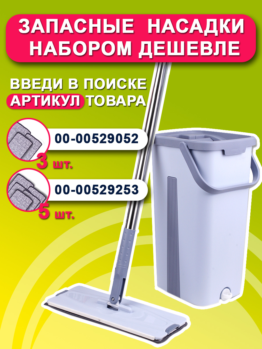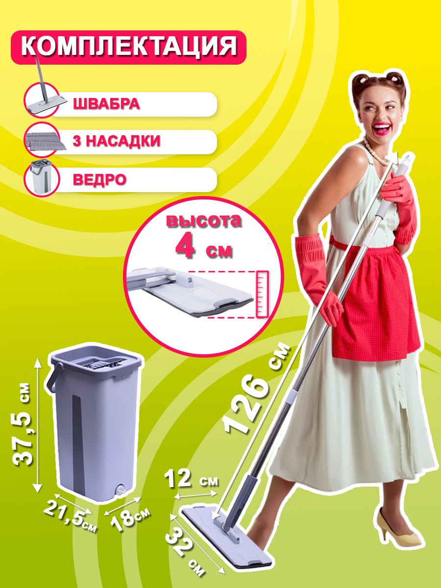 Комплектация:Ведро, швабра, насадки - 3 шт