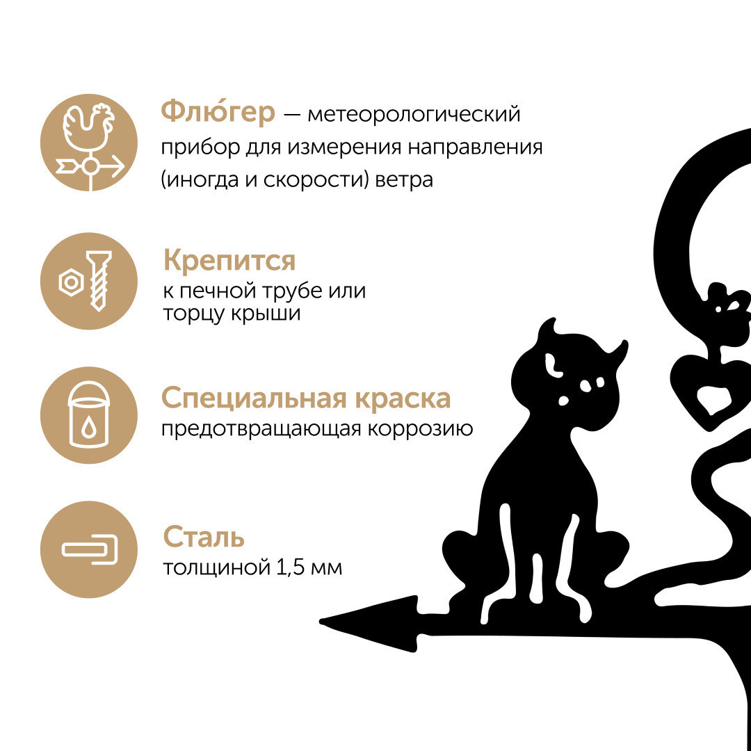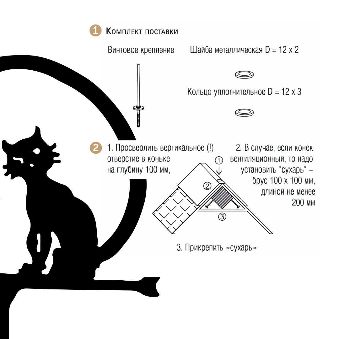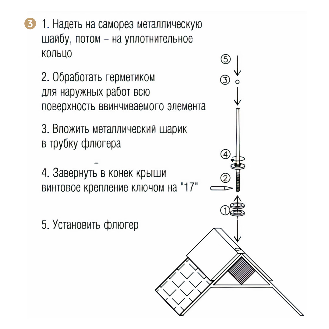 Комплектация:Комплект поставки:1. Винтовое крепление2. Шайба металлическая D=12x23. Кольцо уплотнительное D=12x34. Металлический шарик.5. Флюгер.Описание:?Хотите придать своему дому индивидуальный и завершенный вид? Мы нашли решение.??Флюгер, как традицио