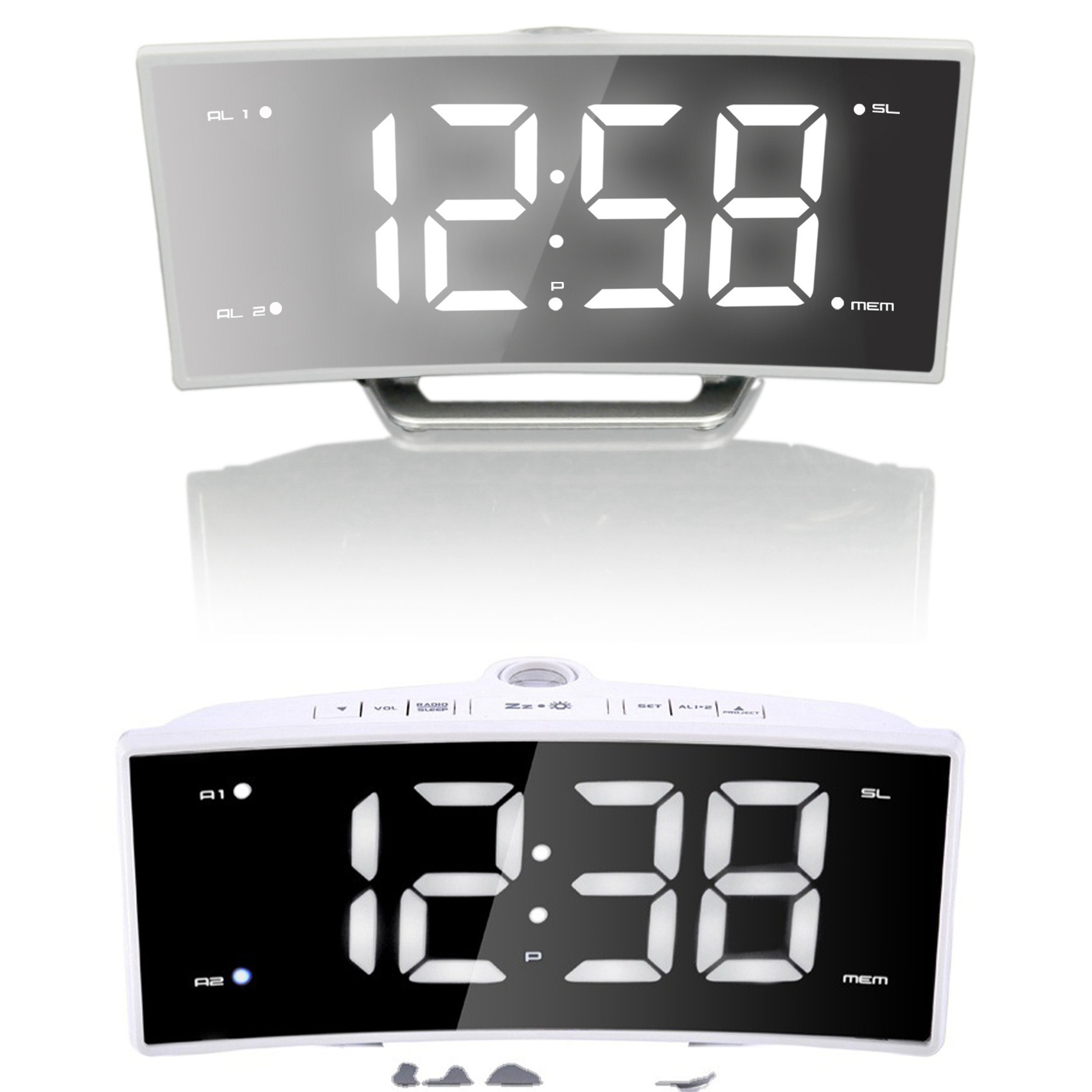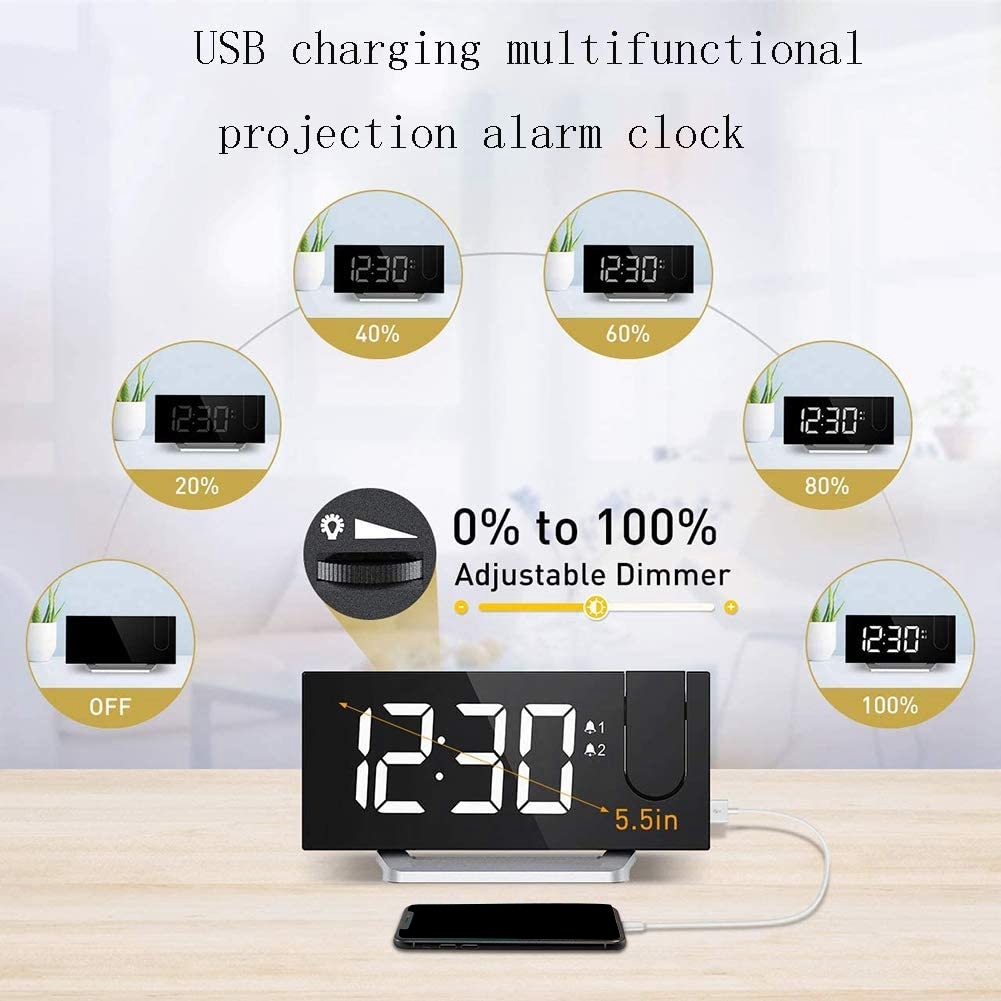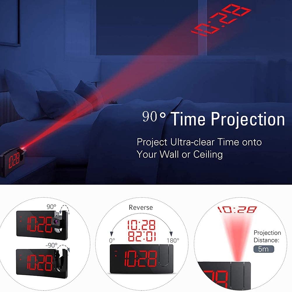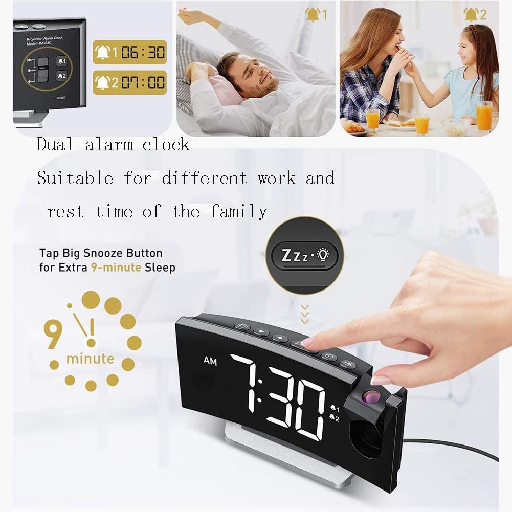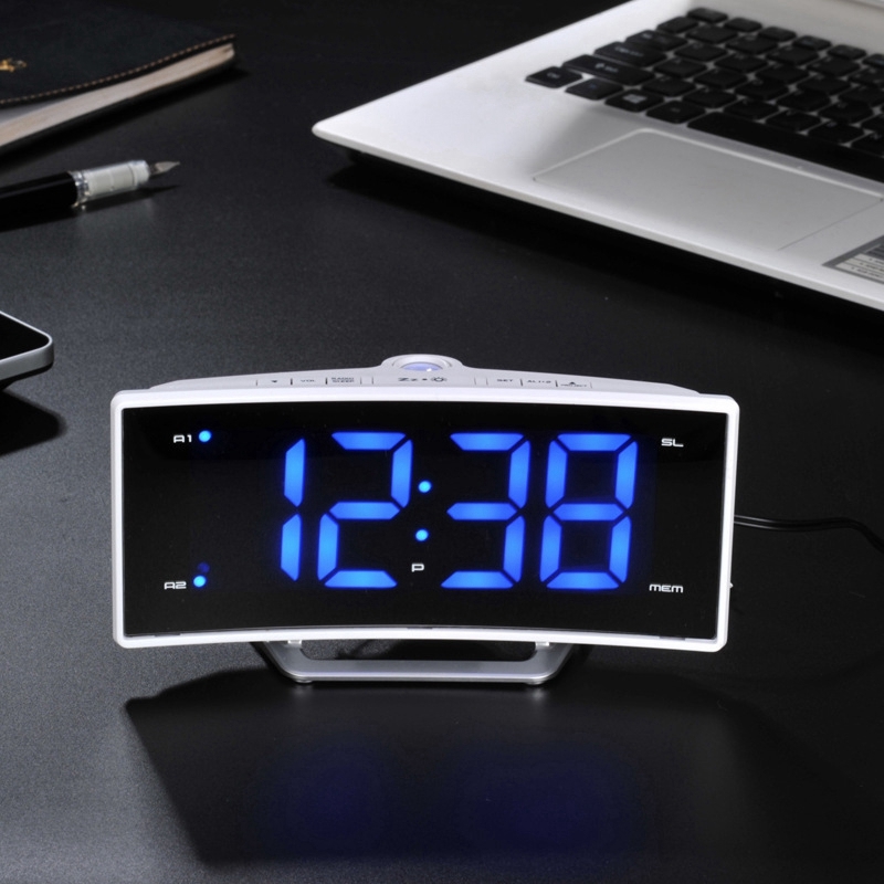 FM-будильник, светодиодный большой цифровой электронный настольный часы, черный
