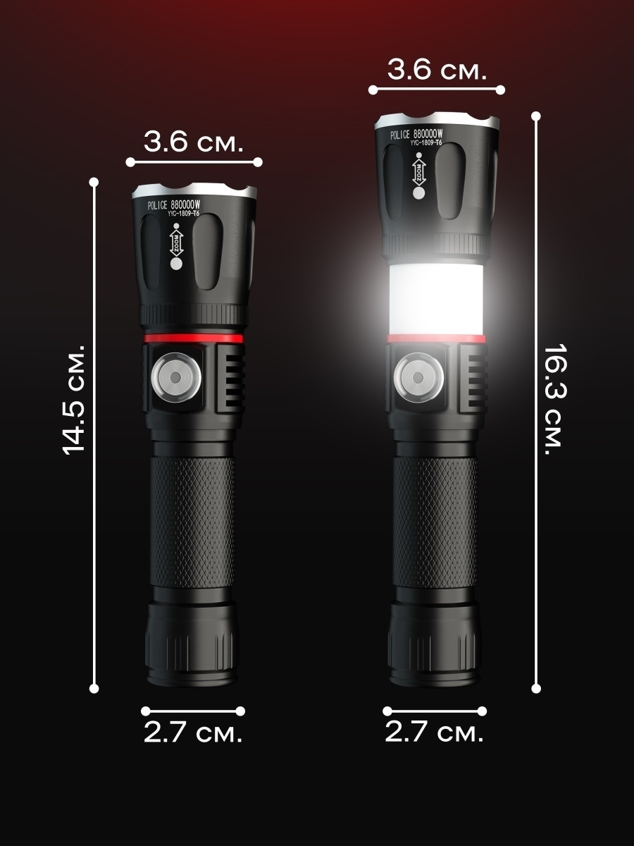 Особенности фонаряВодонепроницаемость, Ударопрочность, Zoom фокусировка, Защита от короткого замыкания, Работа при минусовых температурах (-10), Аварийный маячок, Поисково-розыскной, Защита от повышенного напряжения, Светящиеся ручки