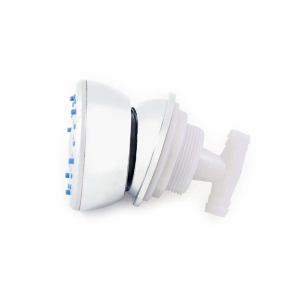 Круглая промежуточная гидромассажная форсунка с широким распылениемПоворотный шарнирВнешний Ø 56 мм, монтажное отверстие Ø 35 ммКорпус из высокопрочного хромированного пластикаРезиновые накладки на соплах
