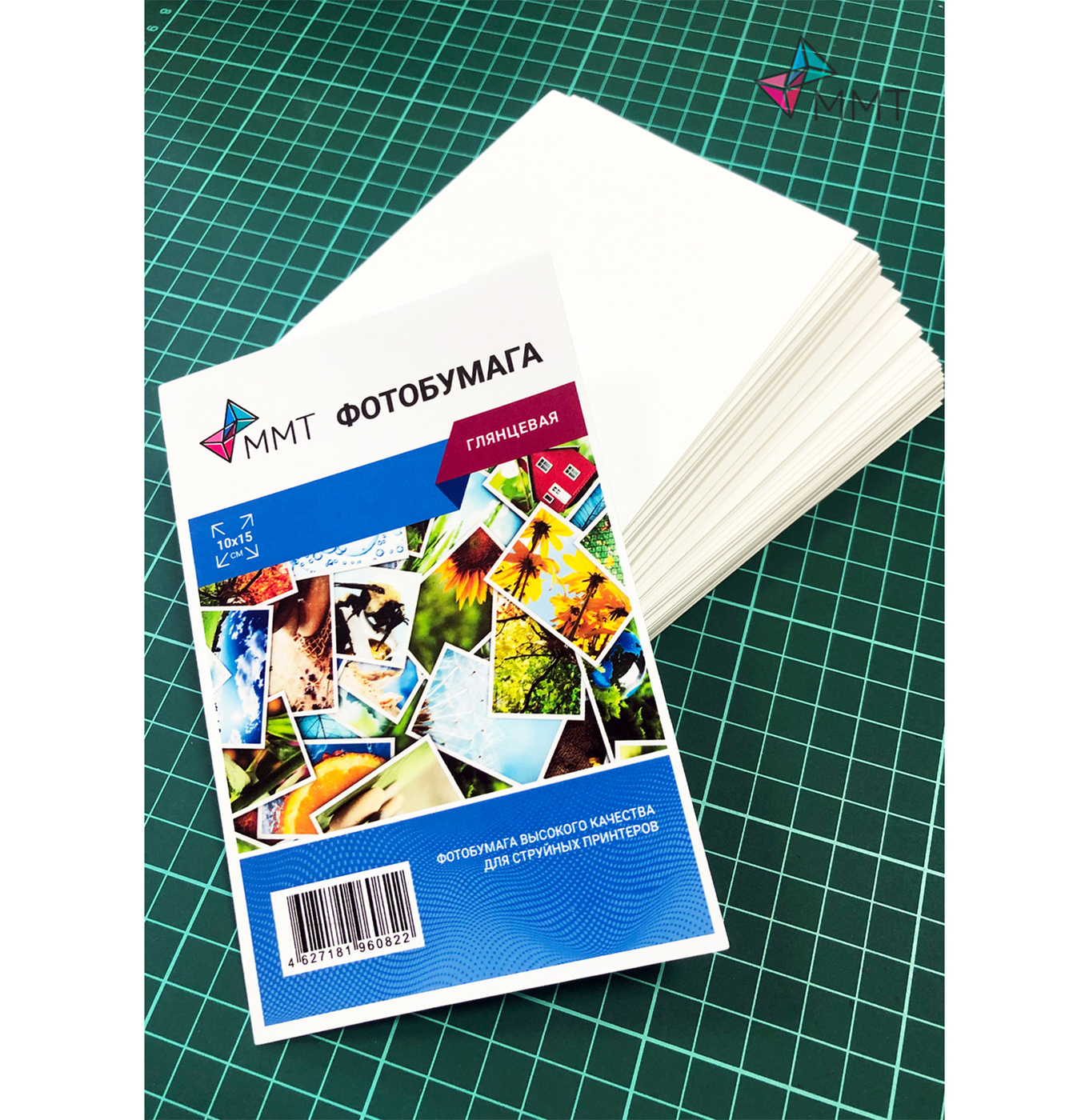 Фотобумага 10х15 ММТТип - фотобумагаПечать - струйнаяПокрытие - глянецПлотность, г/кв.м - 180Размер, см - 10х15Максимальное разрешение печати, dpi - 5760Сертификация - не подлежитБумага высокого качества для струйной печати. Качественн
