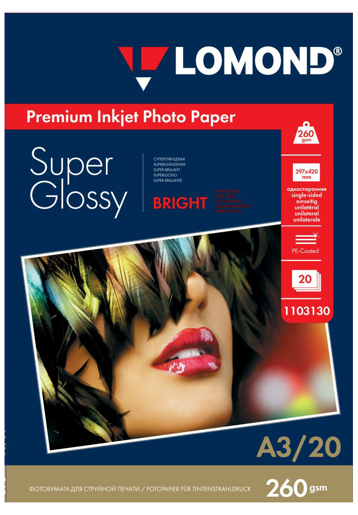 Комплектация:бумага, упаковкаОписание:Фотобумага Lomond A3, 260 г/м2, одностороняя, суперглянцевая, 20л (1103130)