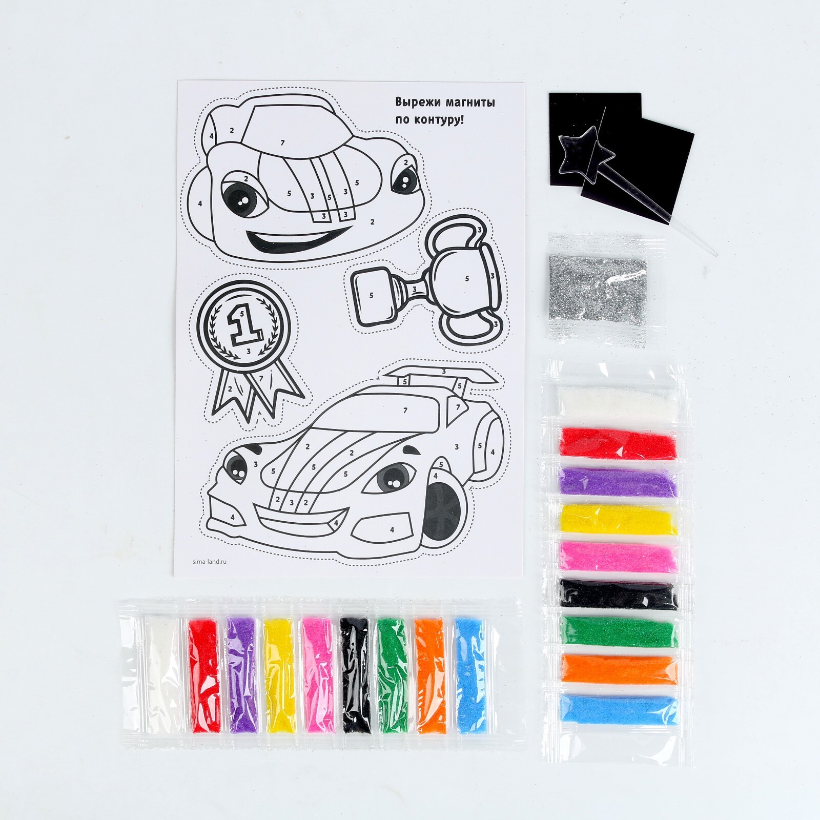 Материалы набораКартон, Песок, Магнит
