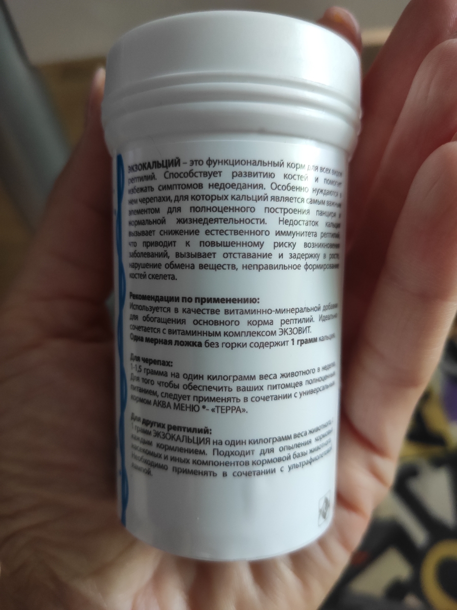Функциональный корм для всех видов рептилий в виде порошка. Способствует развитию костей и помогает избежать симптомов недоедания. Особенно нуждаются в нем черепахи, для которых кальций является самым важным элементом для полноценного построения панциря и