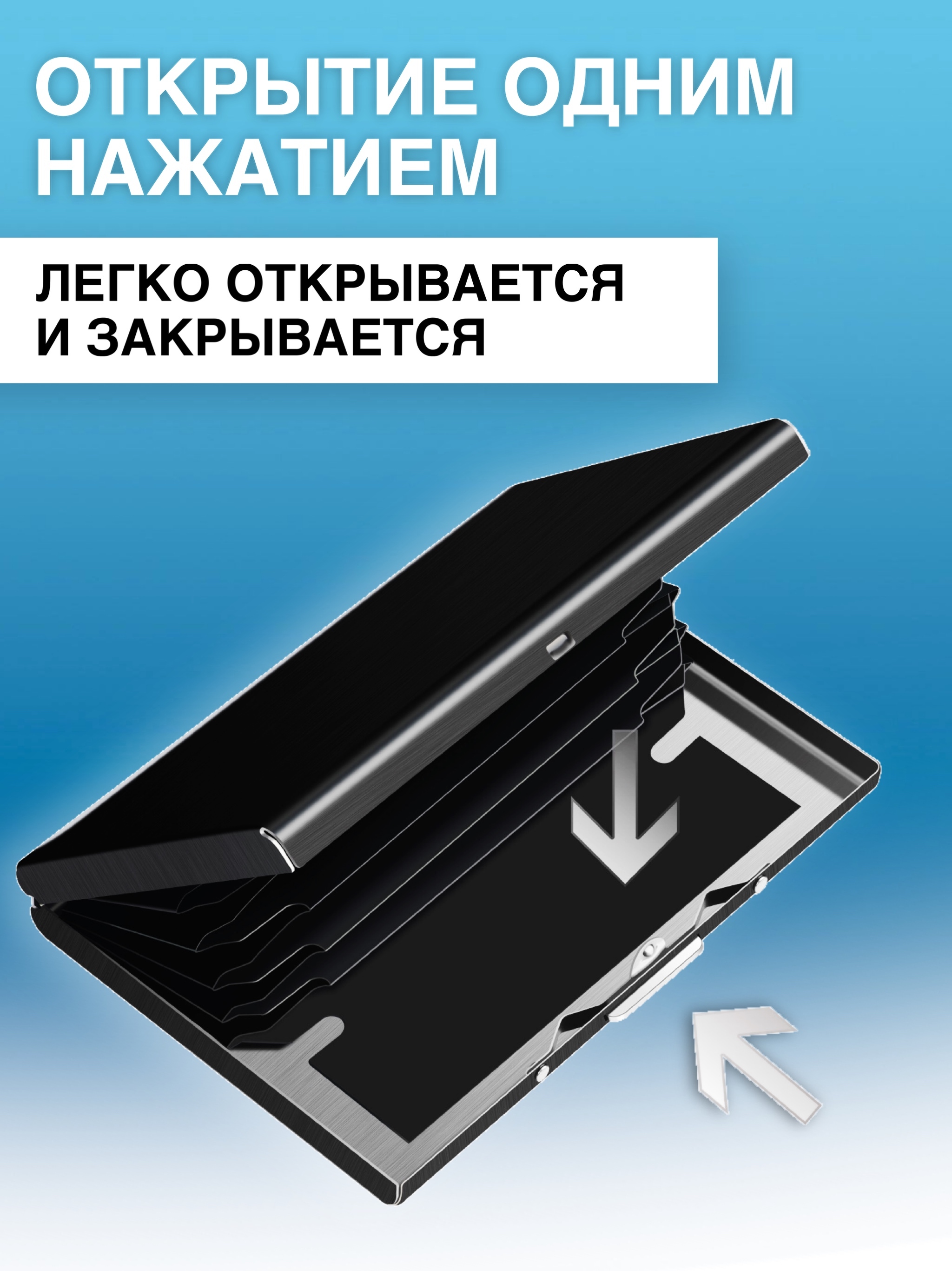 Картхолдер алюминиевый с защитой от RFID и NFC сканирования. Кредитница кошелек вмещает до 12 карт (в зависимости от количества карт с выпуклым тиснением).Визитница для карт будет отличным подарком мужчине, женщине, мужу, папе, брату, другу, парню, подруг