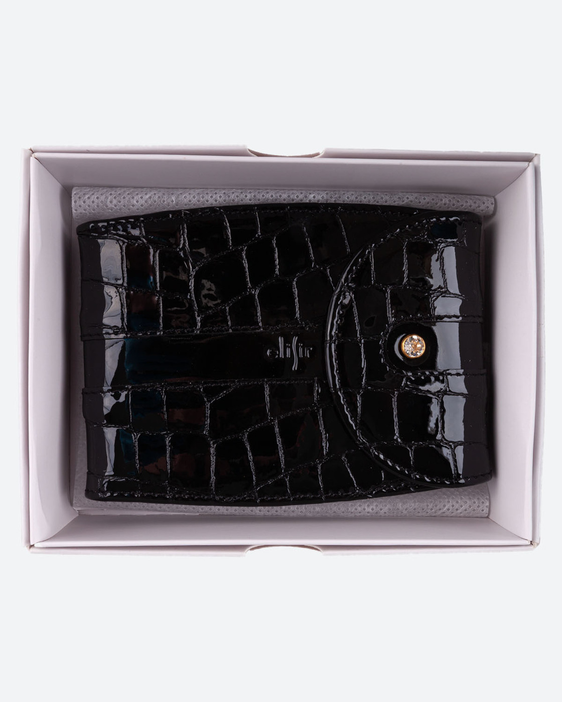 Футляр для визитных и дисконтных карт "Elisir" из натуральной кожи. Коллекция " Ruzhena " с белым кристаллом "Swarovski".Упакован в подарочную коробку "Elisir