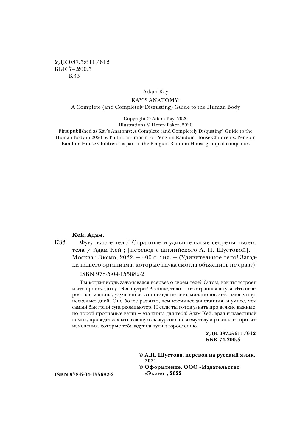 Оригинальное названиеKay’s Anatomy: A Complete (and Completely Disgusting) Guide to the Human Body