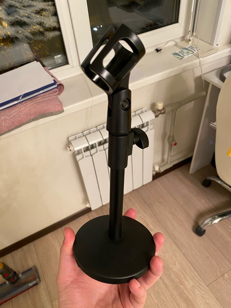 Телескопическая настольная микрофонная стойка для динамических микрофонов (держатель идет в комплекте) или для конденсаторных студийных. Основание - круглое, есть регулировка по высоте, простая фиксация Размер 25 см Основание Круглое, металлическо