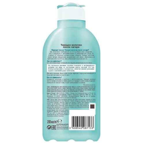 увлажняет, питает, освежает, смягчает, успокаивает кожу