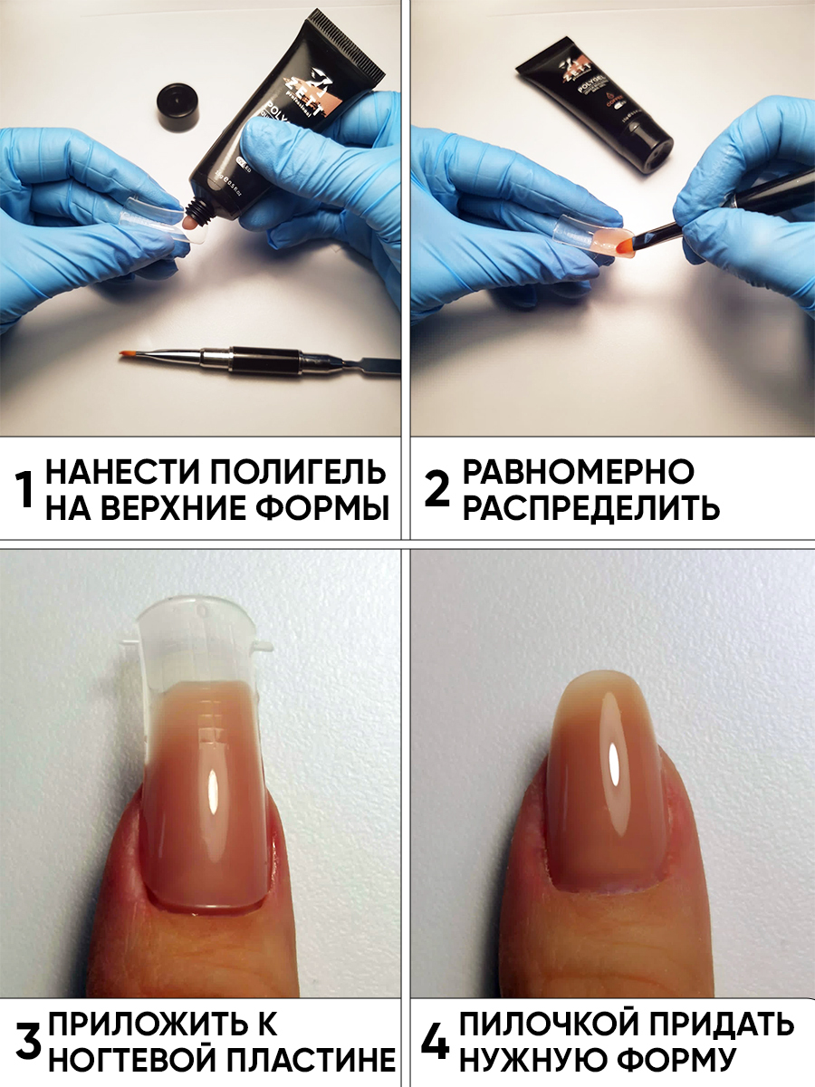 Способ применения:Полигель также известен как акригель и комбигель. Не смотря на такое разнообразие названий это один и тот же материал, который сочетает в себе лучшие свойства геля и акриловой пудры для наращивания ногтей. Полигель очень удобен при модел