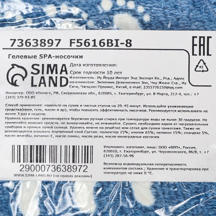 Гелевые SPA-носочки на основе натуральных масел, увлажняющие, 1 пара, синие Габариты товара с упаковкой: 210x100x20 мм.Комплектация:Гелевые SPA-носочки на основе натуральных масел, увлажняющие, 1 пара, синие