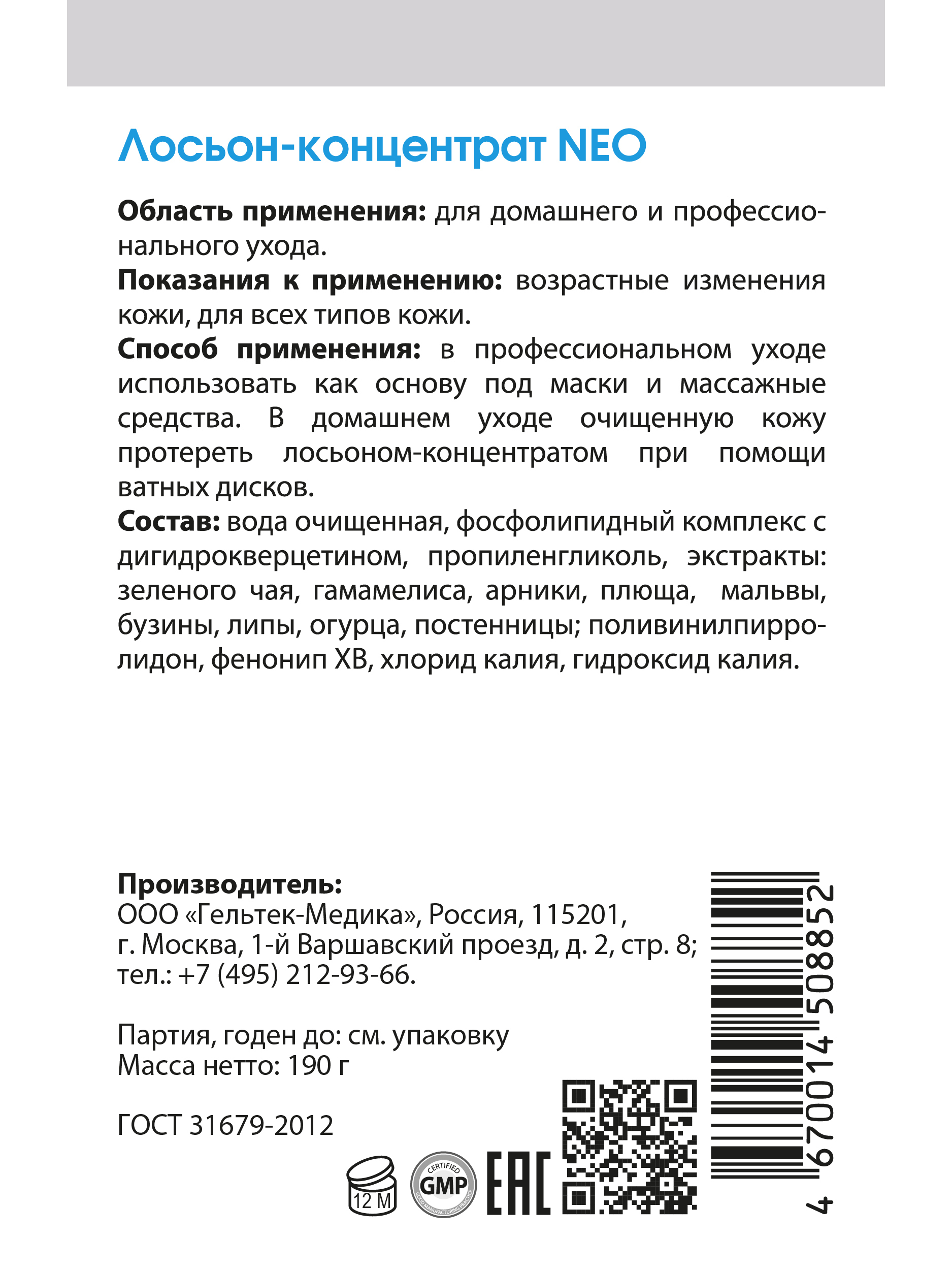 Тоник, маска, омолаживающий концентрат, сыворотка для аппаратной косметологии в одном флаконе? Так может только NEO!В состав лосьона-концентрата NEO введена уникальная доза липосомального дигидрокверцетина – 10%. Дигидрокверцетин значительно ускоряет реге