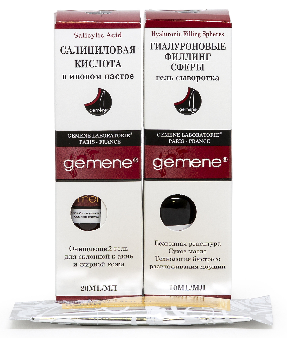Способ примененияGemene Салициловая кислота 20 мл: после умывания протрите лицо, избегая области вокруг глаз. Процедуру повторите утром и вечером. Перед использованием, флакон следует интенсивно встряхнуть; Гиалуроновые Филлинг Сферы для Лица, 10 мл: Несколько капель сре