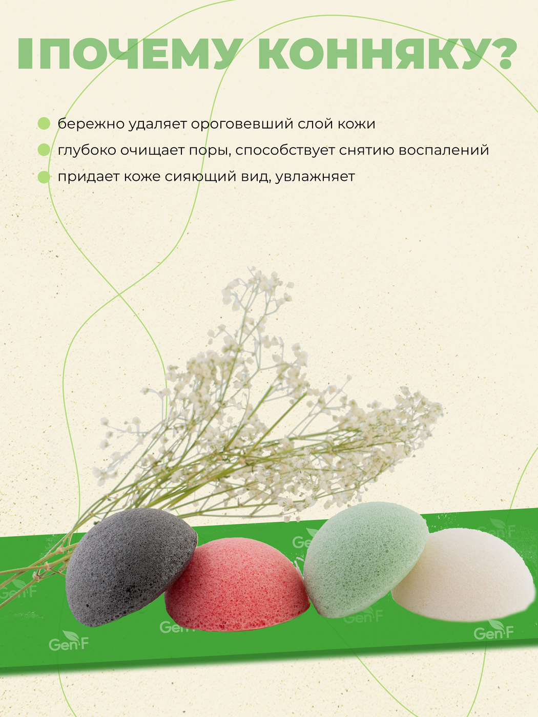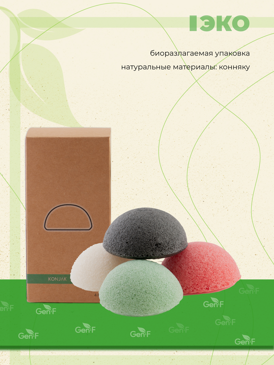 Комплектация:4 Спонжа, 2 многоразовых диска для снятия макияжаОписание:Gen-F это не просто бренд, наша миссия - забота о природе. Спонжи Gen-F сделаны из натурального природного материала конжак/конняку, который выращивается в горах Китая, Кореи и Японии.