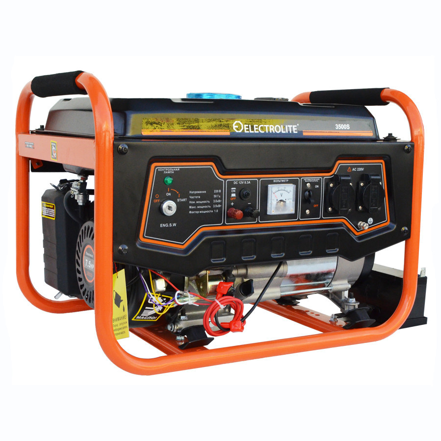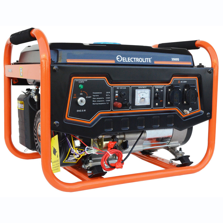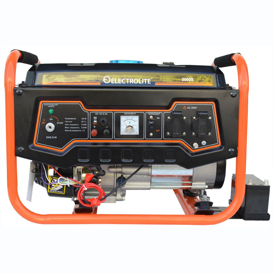 Комплектация:Генератор, розетки, паспортОписание:Модель electrolite 3500s - это удобный генератор для дома, 3 квт мощности и весом установки 46 кг. Резервный источник электроэнергии имеет встроенный двигатель LT170F, низкий уровень шума (69 ДБ) и объем ба