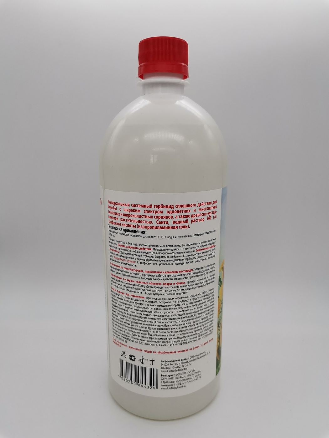 Комплектация:360 г/л глифосата кислотыОписание:Универсальный системный гербицид сплошного действия для борьбы с широким спектром однолетних и многолетних злаковых и широколистных сорняков, а также древесно-кустарниковой растительностью<br/><br/&g