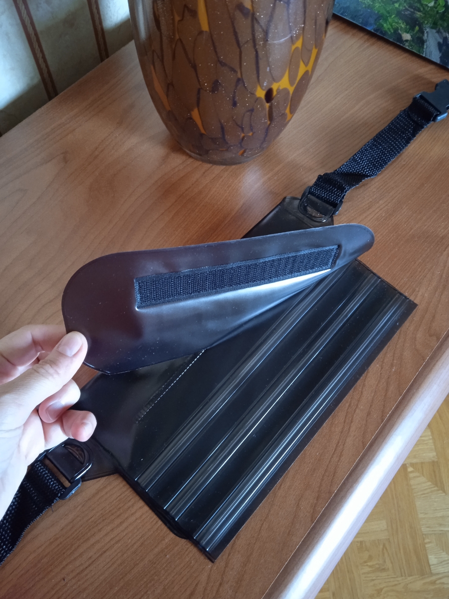 Размер 22*18 см.Материалы: ПВХ + липучка велкро. Для защиты документов, денег, телефона и других важных вещей от намокания.