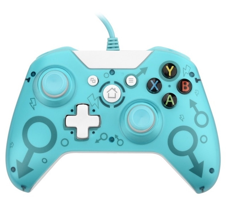 Адаптированный под последние версии проводной геймпад проводной бирюзовый с символом Марса для Xbox One, универсальный контроллер для соревновательных игр для приставок Xbox One и ПК. Оснащен четырьмя многофункциональными кнопками с возможностью переназна