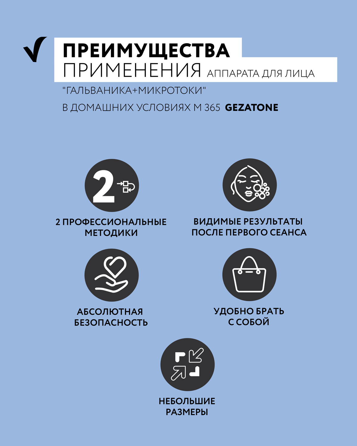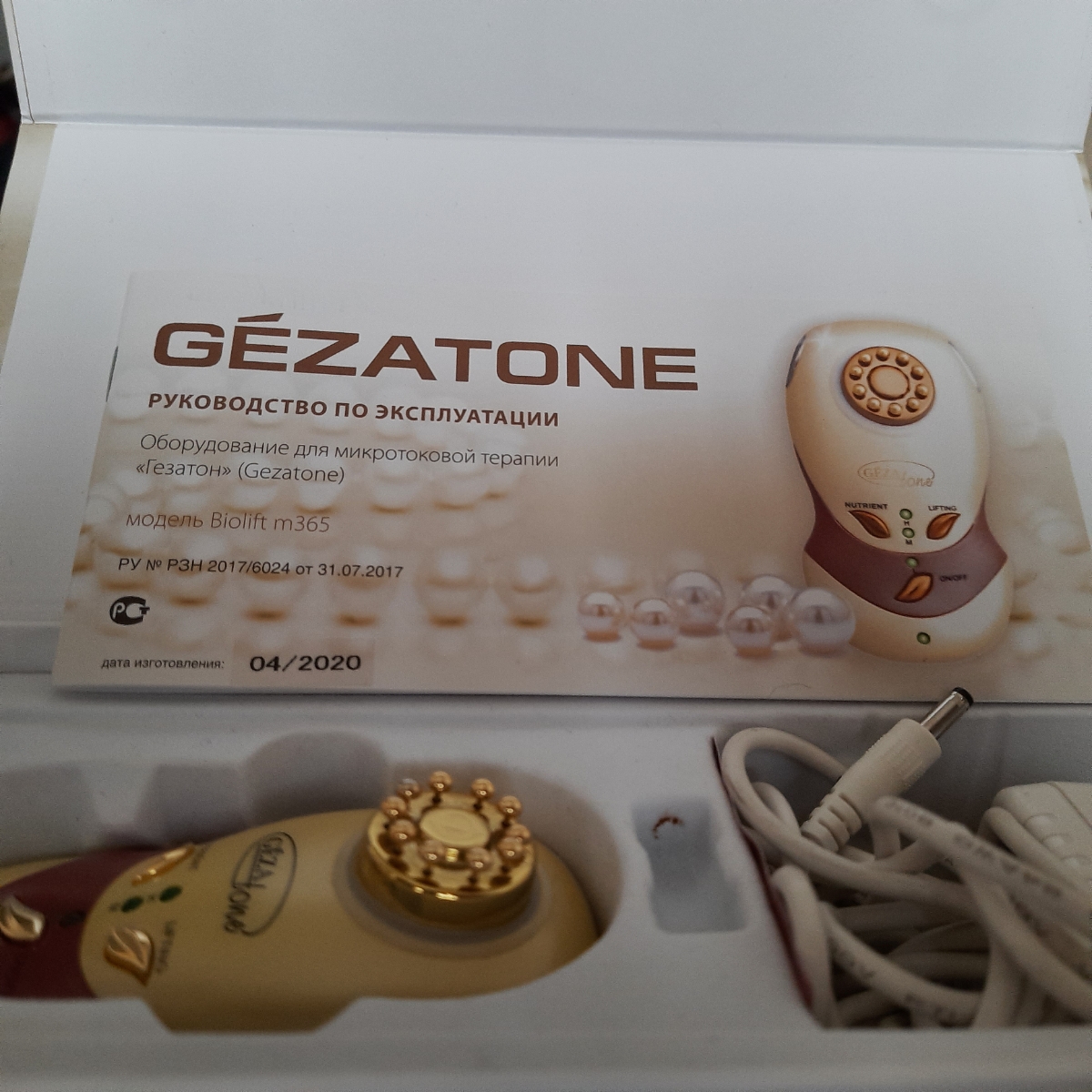 Насадки:1Комплектация:Комплектация:Аппарат GezatoneBioliftm365 - 1 шт. Сетевой адаптер - 1 шт. Инструкция по эксплуатации - 1 шт. Описание:Аппарат для лица Gezatone "Гальваника+Микротоки" в домашних условиях m365 позволит избавиться от мимических морщин,
