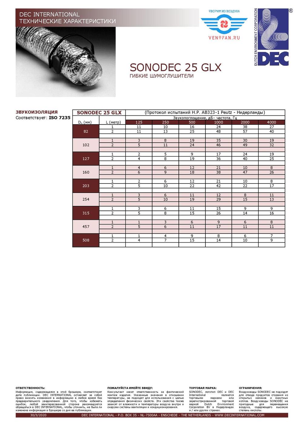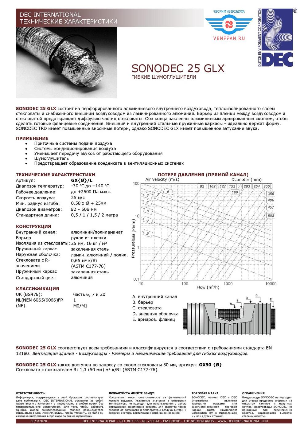 Комплектация:1 метр в 1 коробкеОписание:Гибкий шумоглушитель Sonodec 25 GLX состоит из внутреннего перфорированного воздуховода, изготовленного из ламинированного алюминия / полиэстер, изолированного звукопоглощающим материалом толщиной 25 мм и