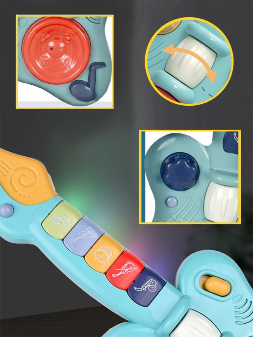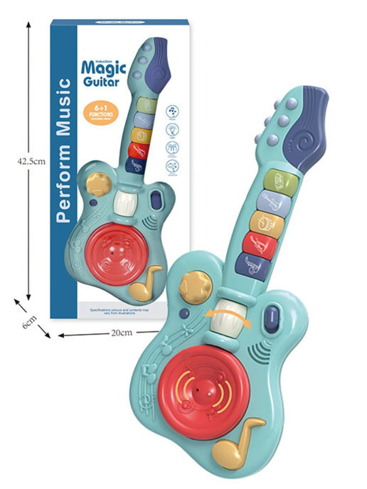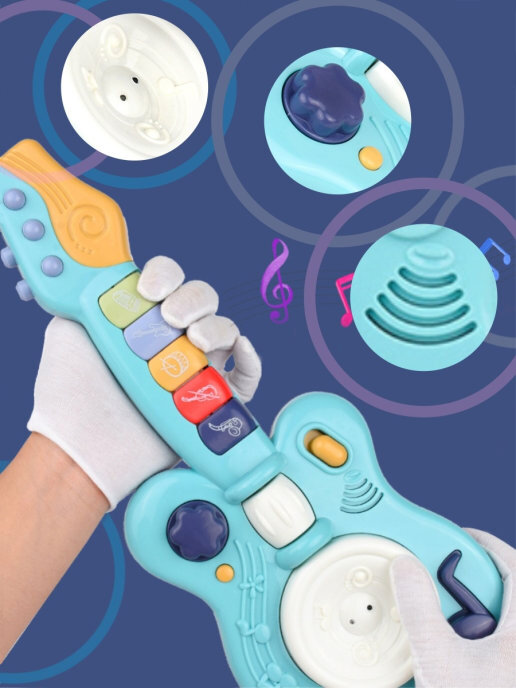 Детская многофункциональная гитара - увлекательная игрушка для детей от 3-х лет, имеющая яркие цвета, уникальный дизайн, который привлечет ребенка. Детская музыкальная гитара познакомит малыша с инструментом и разукрасит его досуг забавными мелодиями, она